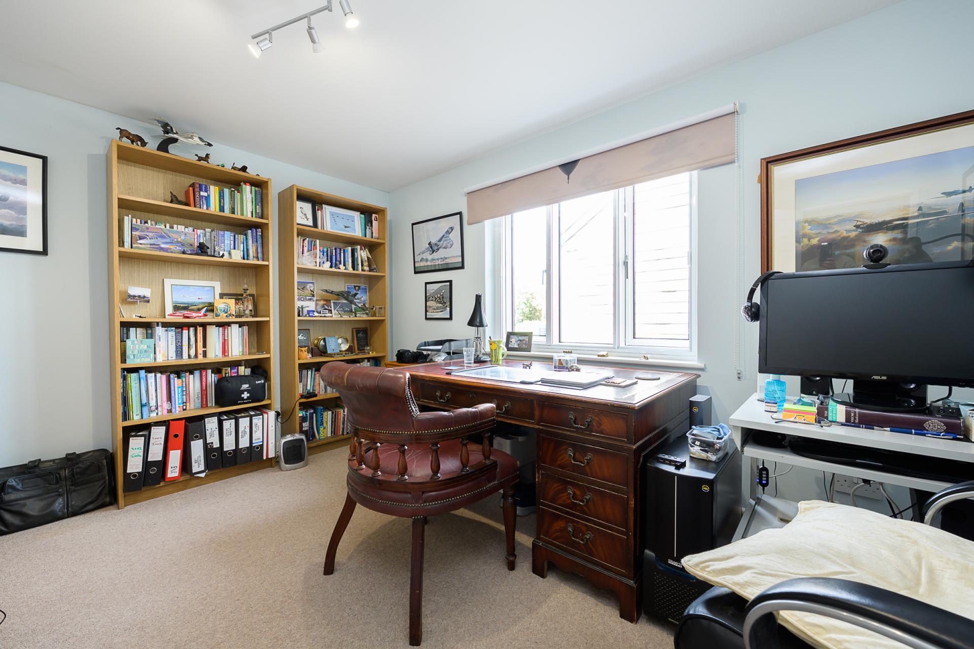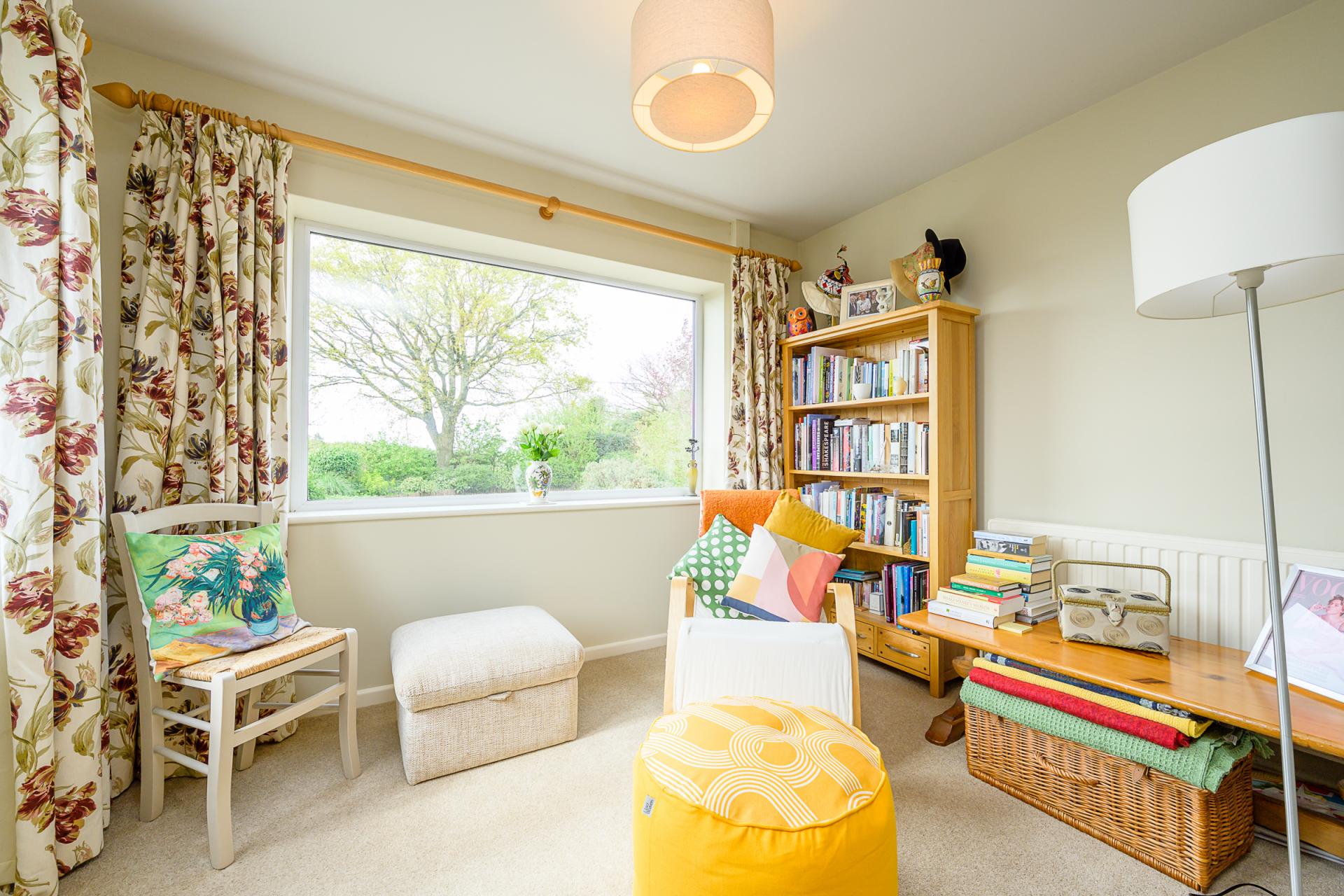 Meanwhile, in the far right-hand corner of the kitchen, there is a door leading to an office and this also presents a beautiful and inspirational vista of the country hills beyond the garden. There are two more reception rooms found on this level of Oak Crest, both of which sit on the left-hand side of the reception hall. Presently, one serves as a snug whereas the other is in use as a study. This could instead be adopted for multi-generational living, making an annexe, or generous guest suite.