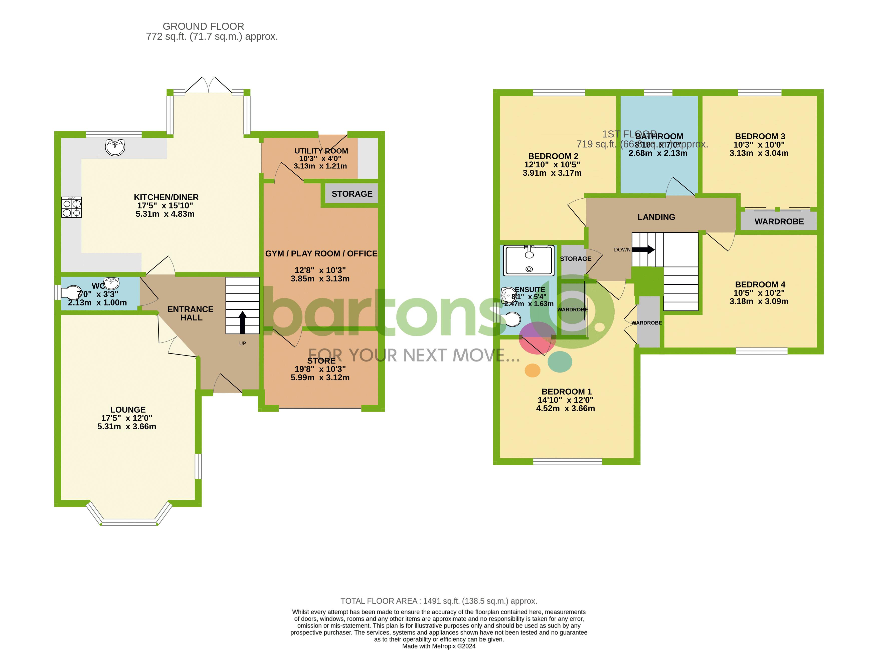 - Converted Garage - Now a Gym and Store, could be used as a Home Office / Play Room