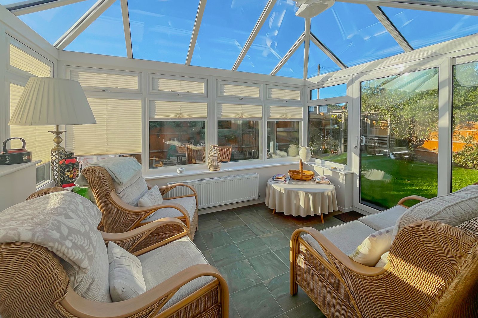 The heart of the home is the modern fitted kitchen, which flows seamlessly into a bright, double-glazed conservatory opening directly onto the stunning gardens.