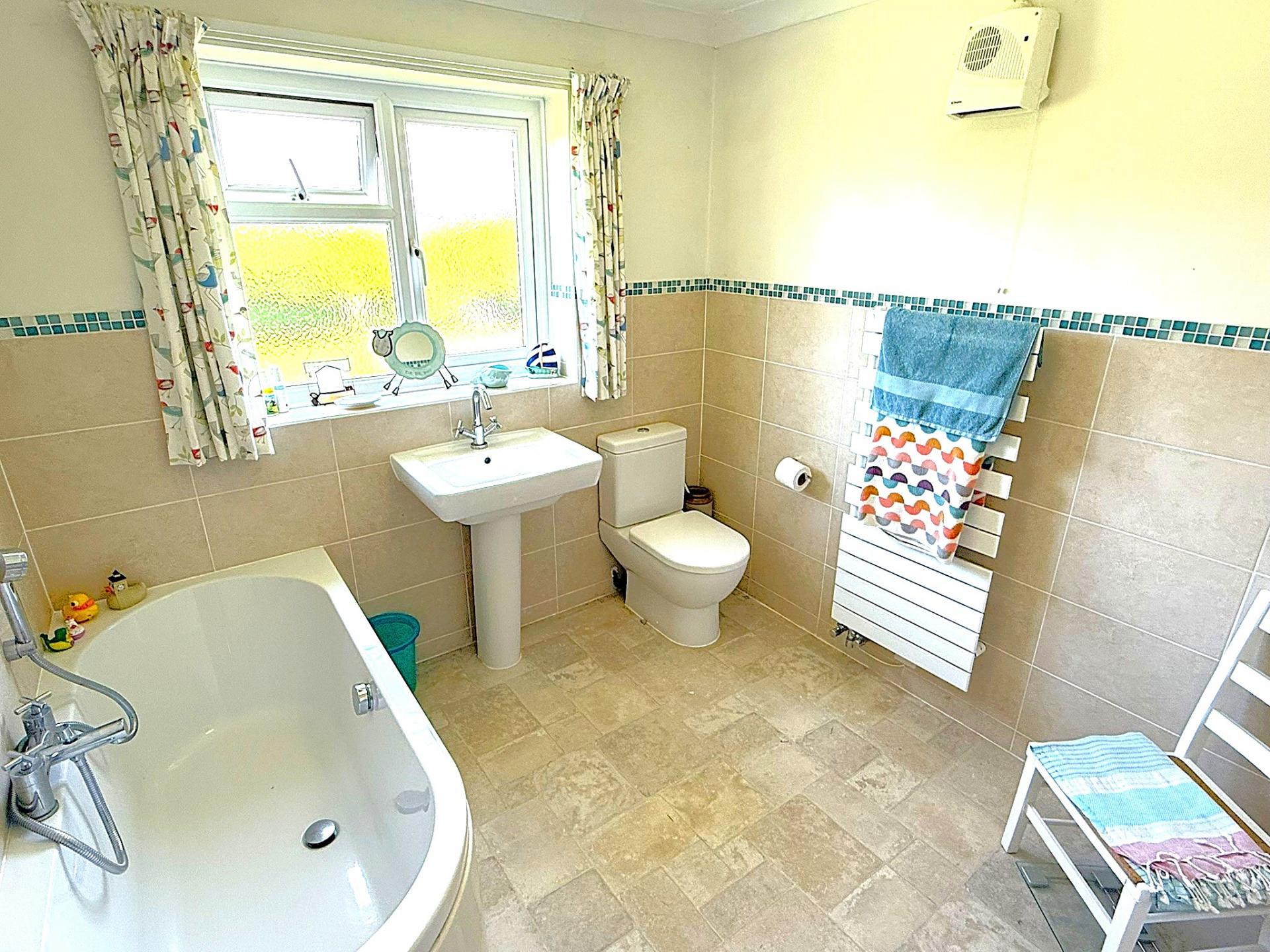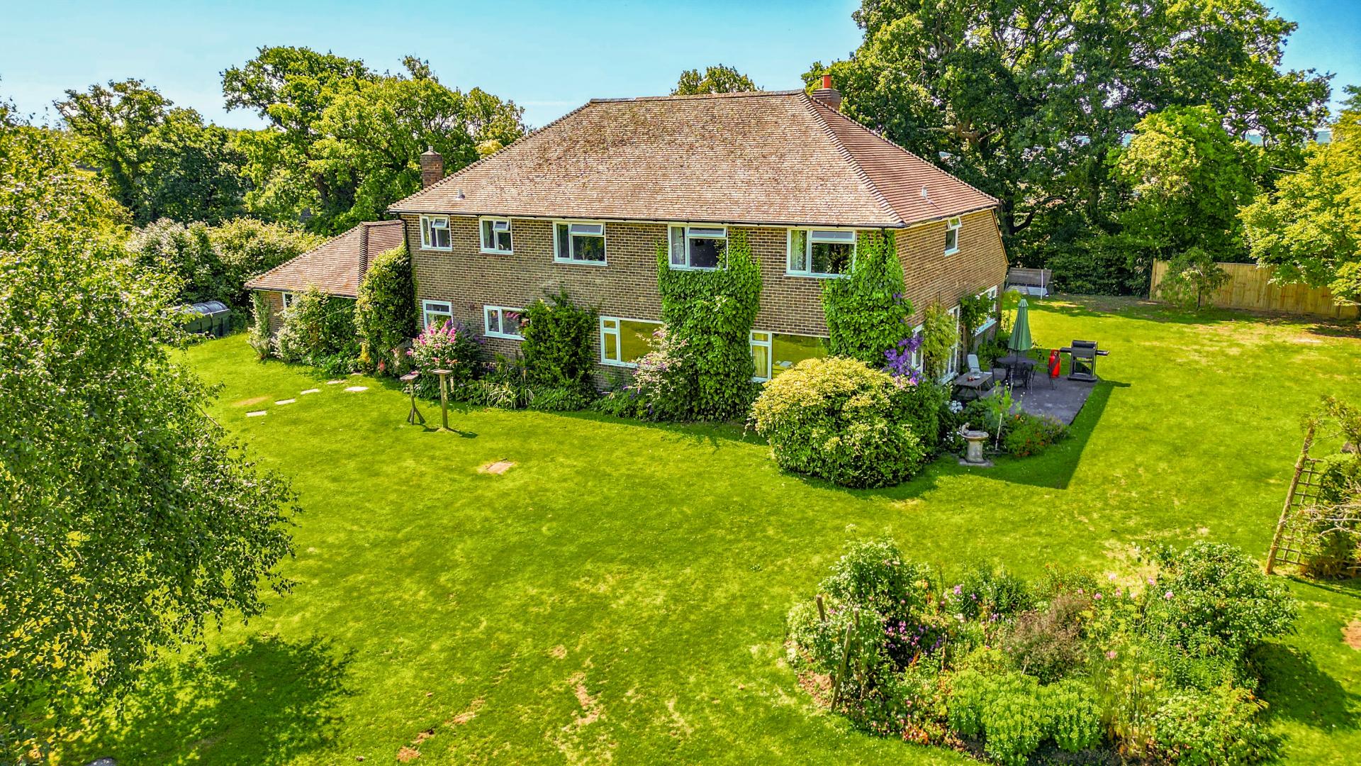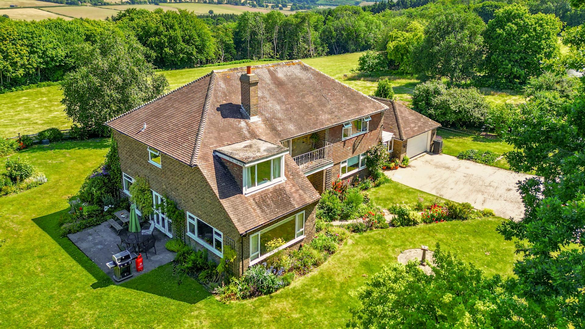Stairs lead from the entrance hall up to a large first floor landing with south facing window and access door leading onto a balcony that enjoys views looking over the Brede Valley. Accessed from the landing is a principal bedroom with south facing window, connecting dressing room with built in wardrobe and ensuite bathroom with panel bath, pedestal washbasin, and close coupled WC. A second double bedroom enjoys south facing window with built in wardrobes and ensuite shower room/WC. A further three double bedrooms enjoy rear facing windows looking out over the garden and Tillingham Valley beyond all with built in wardrobes and at the end of the landing is a family bathroom with panel bath, pedestal washbasin and close coupled WC. Externally the property benefits from a generous level wrap around garden (0.74 acres / 0.3 ha) laid to lawn interspersed with a variety of shrubs and flower beds. At the front of the garden bordering the road is a spring fed pond, while on the west side of the house is an entertaining paved seating area and children’s Wendy House and at the rear of the property at the eastern end of the garden is a vegetable patch and timber frame greenhouse.