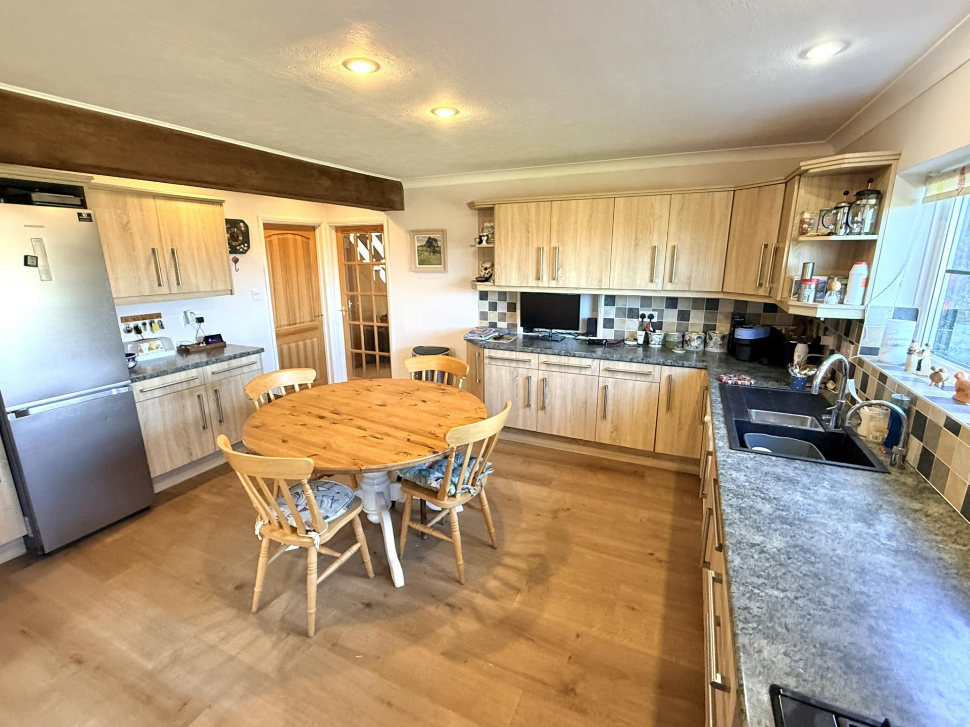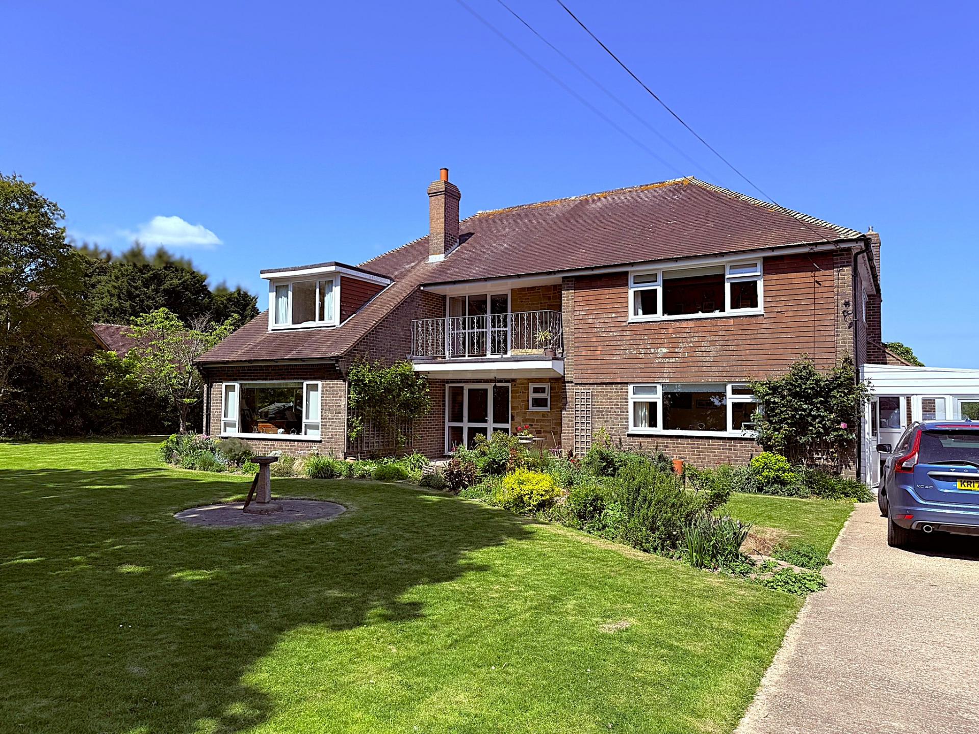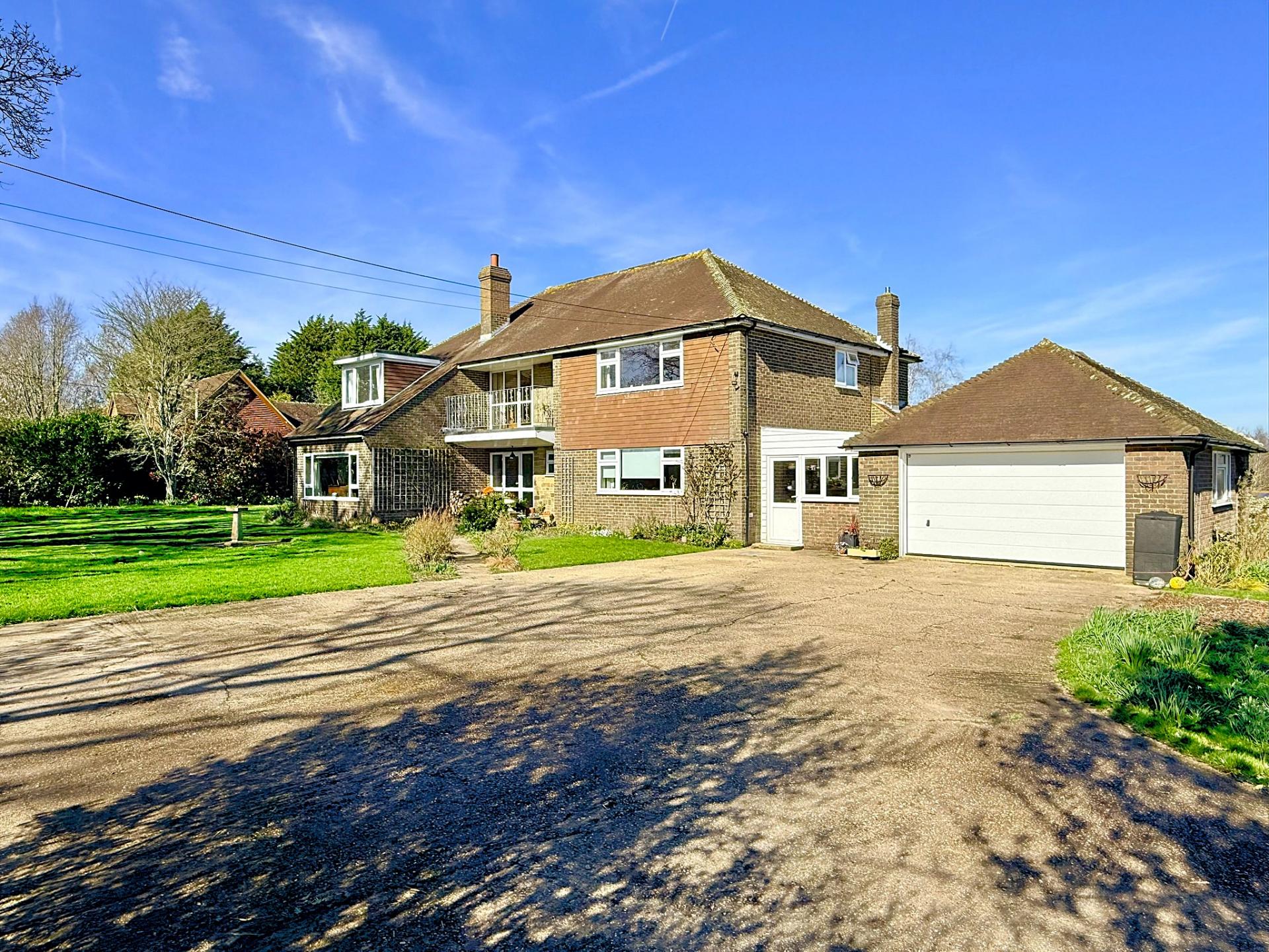 Description: Sowdens Orchard is an impressive, detached house situated on the edge of Udimore village with stunning views looking over both the Brede Valley and Tillingham Valleys and beyond. The property we understand was originally built in 1971 and is of brick construction with UPVC double glazed windows all beneath a pitched tiled roof. The property is approached from Udimore Road via a concrete driveway that runs alongside Udimore Road passing a former Nissen Hut and then enters into the front garden via a five bar gate leading to a generous parking area in front of an attached double garage. A paved path leads from the parking area to a canopied porch and central front door that opens into a light entrance hallway. Accessed from the hall is an impressive 26ft drawing room with large double aspect window including French doors leading out to the garden and benefiting from a central stone facia chimney with Jet Master fireplace. Next to this is a dining room with rear facing window looking over the garden, serving hatch through to the kitchen and connecting door through to a generous study room with double aspect windows and glazed door out to the garden. A ground floor cloakroom /WC is also accessed off the entrance hall along with access to a large kitchen / breakfast room with modern lime oaked shaker units, with laminate worktops, composite black sink and drainer, gas hob with extractor hood above, electric oven, space and plumbing for a dishwasher and fridge / freezer. An oil-fired Rayburn range cooker is situated at the end of the kitchen which also heats the hot water and central heating within the property. Accessed off the kitchen is a sitting room / playroom / craft room with large south facing window, while also accessed from the kitchen is a utility room with further base units with stainless steel sink and drainer and space and plumbing for a washing machine and tumble dryer. A large covered glazed lobby is accessed from the utility room off which is a former boiler room/ storeroom, front and rear access doors and connecting door leading into the attached double garage with small workshop room at the rear.