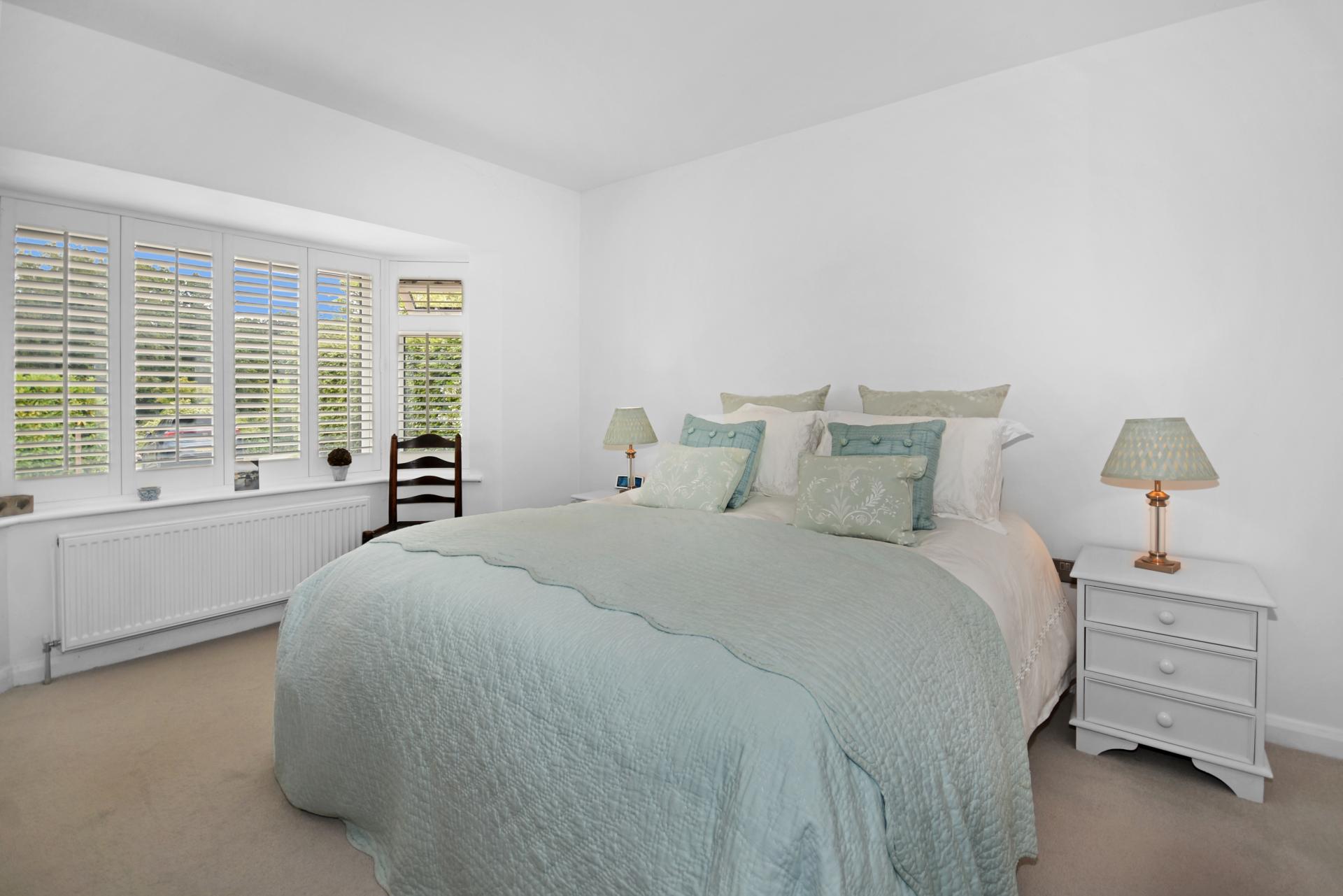 En-Suite Shower Room: Double glazed window to side with shutters. Fitted with contemporary white suite comprising back to wall WC, semi integrated hand basin set into pale grey wood effect storage unit with laminate surround, double walk in shower cubicle with glass screen to side. Chrome ladder style dual towel rail (elecric or via central heating). Tiled floor with under floor heating. Inset ceiling lights.