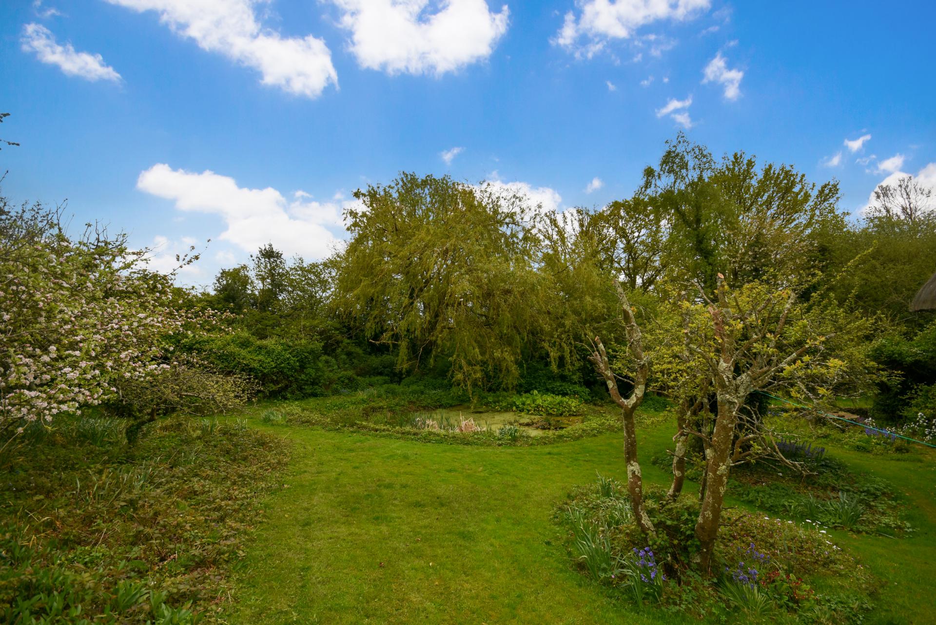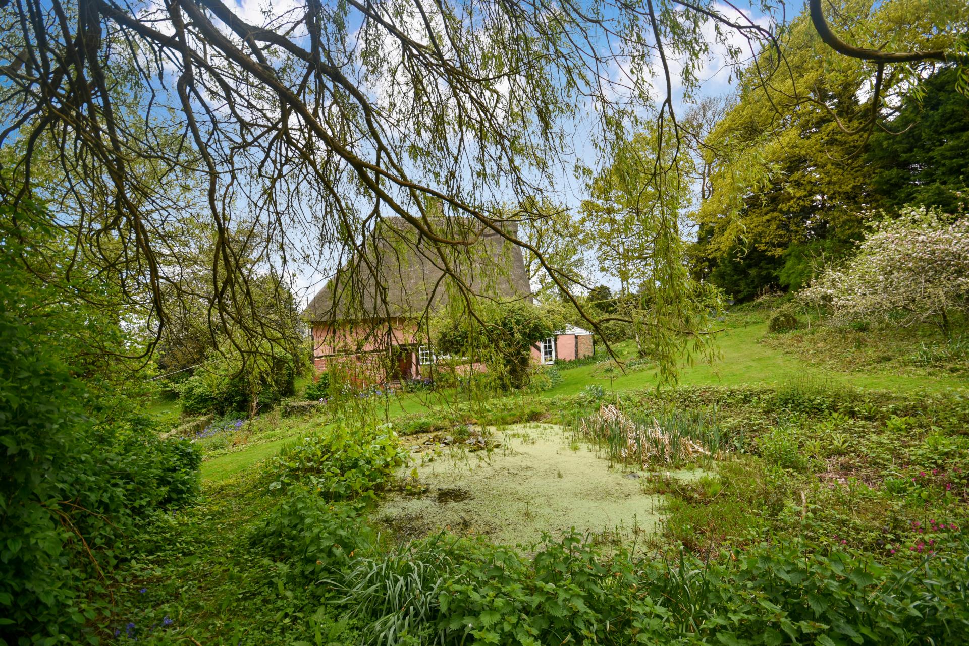 Outside: The property is approached over a private track adjoining farmland to the side with a level cleared parking area. The gardens and grounds are believed to measure 1.4 acres (TBV) predominantly comprising bluebell woods with meandering paths and grass walkways. The house has separate access from the lane via steps and brick paved pathway to the front door. The gardens immediately surrounding the house are mainly laid to lawn with planted beds and enjoy hedged and tree lined boundaries. The rear garden has large central pond with small orchard area to the side and a tucked away summer house, along with various stores (in need of restoration). Meandering walkways lead back into the bluebell wood.
