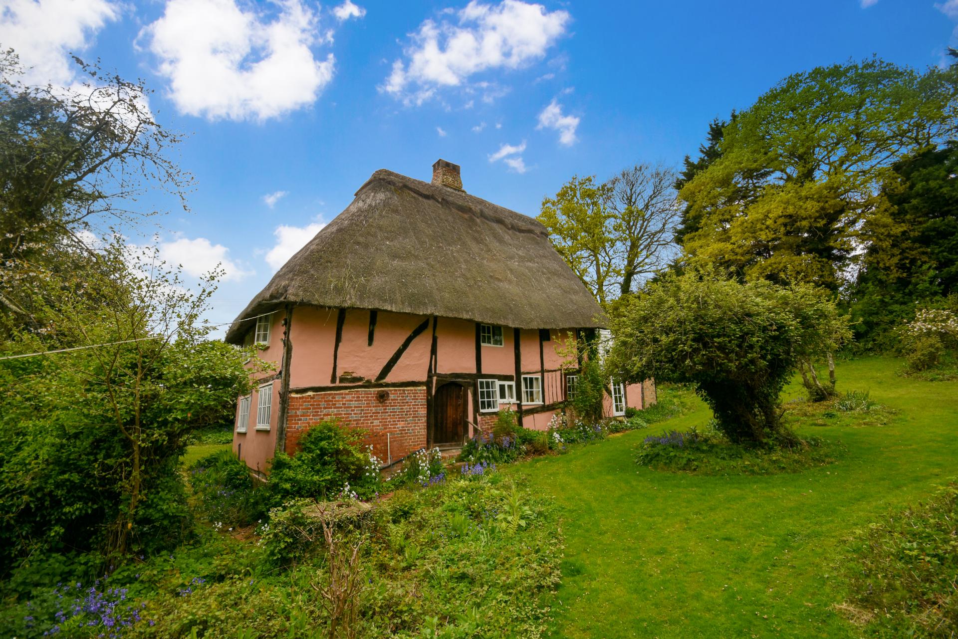 A charming, detached Grade II listed thatched cottage, believed to date back to the 15th Century located on the rural outskirts of the village offering potential for updating, sitting in delightful gardens & woodland of 1.4 acres (tbv) adjoining farmland. Character accommodation with some unique historic features, including 3 bedrooms, 2/3 reception rooms, kitchen/breakfast room with separate utility room. GFCH.
