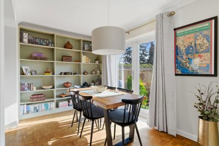 - The ground floor boasts a spacious sitting room flowing seamlessly into a dedicated dining area with French doors that open out to the beautifully landscaped rear garden