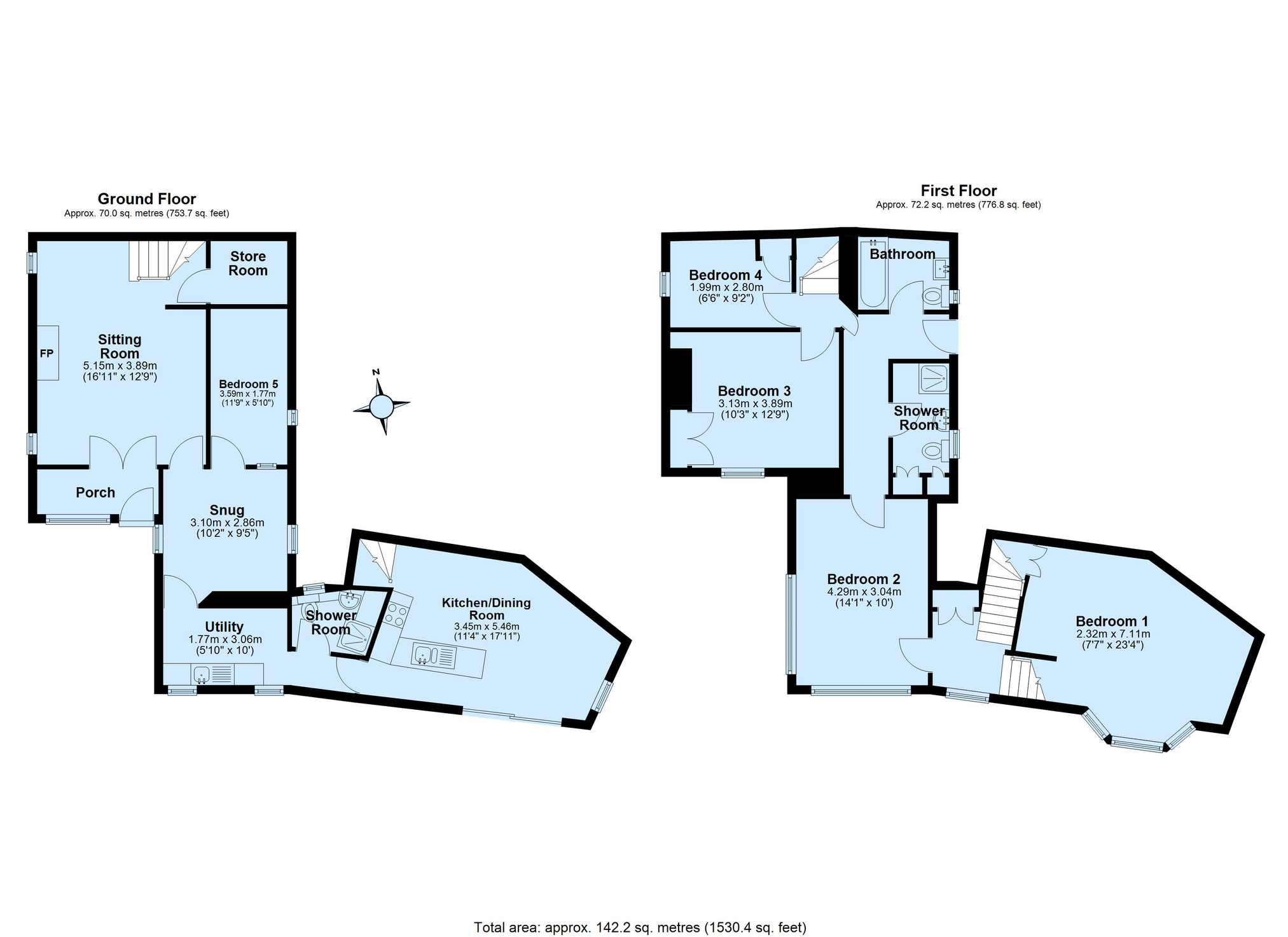 - 5 Bedrooms and 3 bathrooms/shower rooms