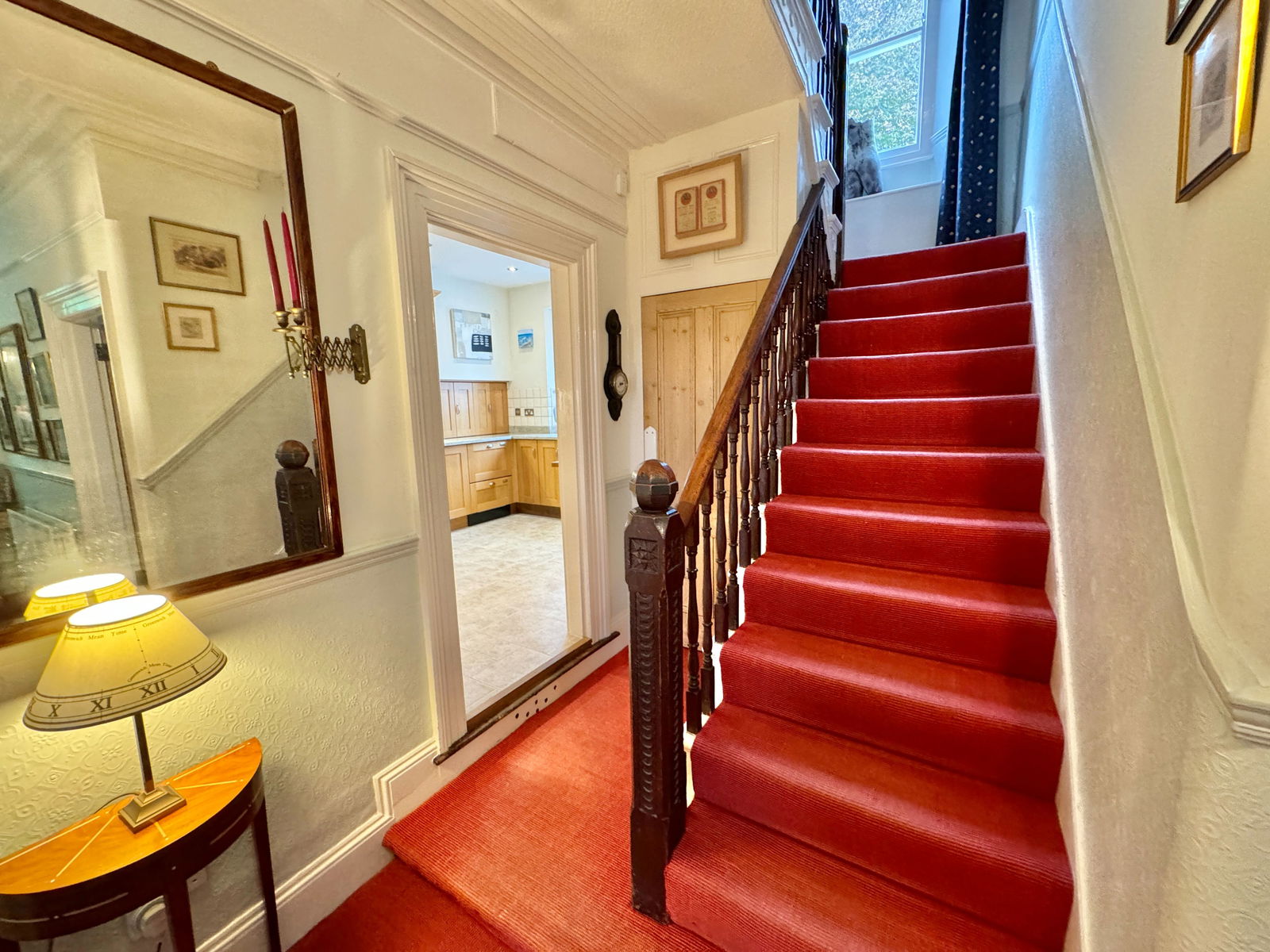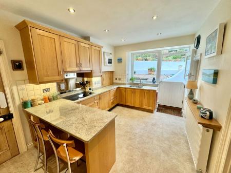 The kitchen is fitted to an incredibly high standard with a matching range of base and eye level oak fronted storage units, (the kitchen was designed & built by Treyone Kitchens, a highly reputable local company), an integral five burner induction hob, extractor fan, one and a half bowl stainless-steel sink unit with a mixer tap, double dishwasher, Neff double oven, warming drawer, microwave, integral fridge, tiled flooring, inset spotlights and a doorway to a pantry with space for a large chest freezer, shelving and a window to the side. From the kitchen, there is a stable door leading to the rear garden. The utility room is fitted with a matching range of base and eye level storage cupboards with roll top worksurfaces, plumbing for a washing machine, space for a tumble dryer, vaulted ceiling with a skylight, wall mounted Worcester combination boiler which was installed in February 2021 and is annually serviced, tiled floor and steps lead to the cloakroom with a low level WC, pedestal wash hand basin and window to the rear elevation.