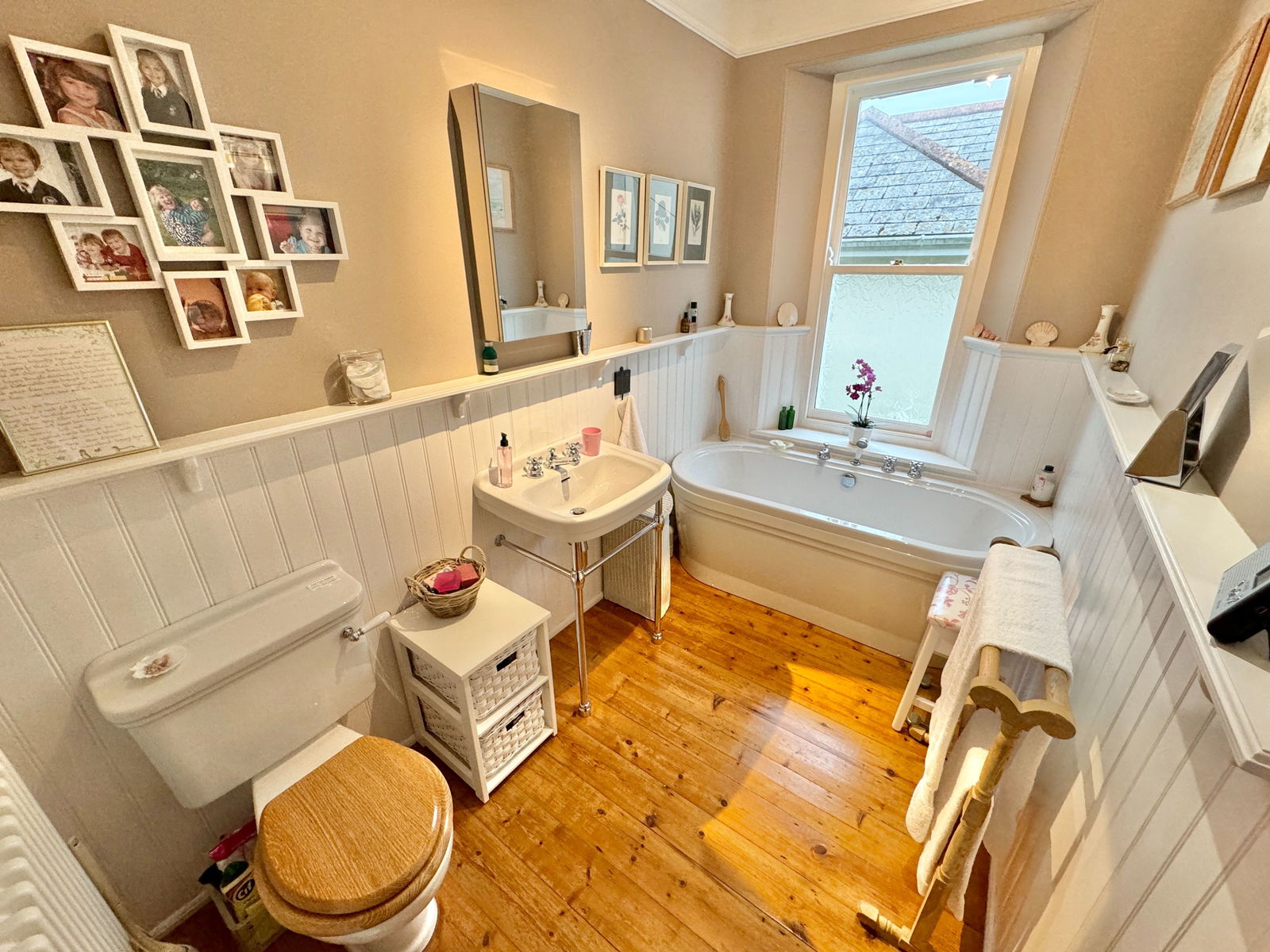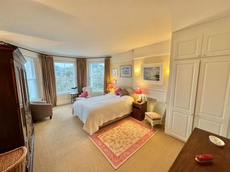 From the main hallway, stairs ascend to the first-floor landing with a large sash window to the rear elevation overlooking the garden, large landing with a ceiling rose and picture rail. A doorway into bedroom one; a beautifully light and spacious double room with a fitted wardrobe and a bay-window to the front with outstanding views over the River Tamer to Plymouth Sound and beyond. Bedroom two is a further double, with windows to the front elevation, picture rail and a doorway to a Jack and Jill bathroom; fitted with a double ended roll top bath with a shower mixer tap, pedestal wash-hand basin, low level WC, wooden stripped flooring, sash-window to the side and half height panelling.