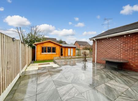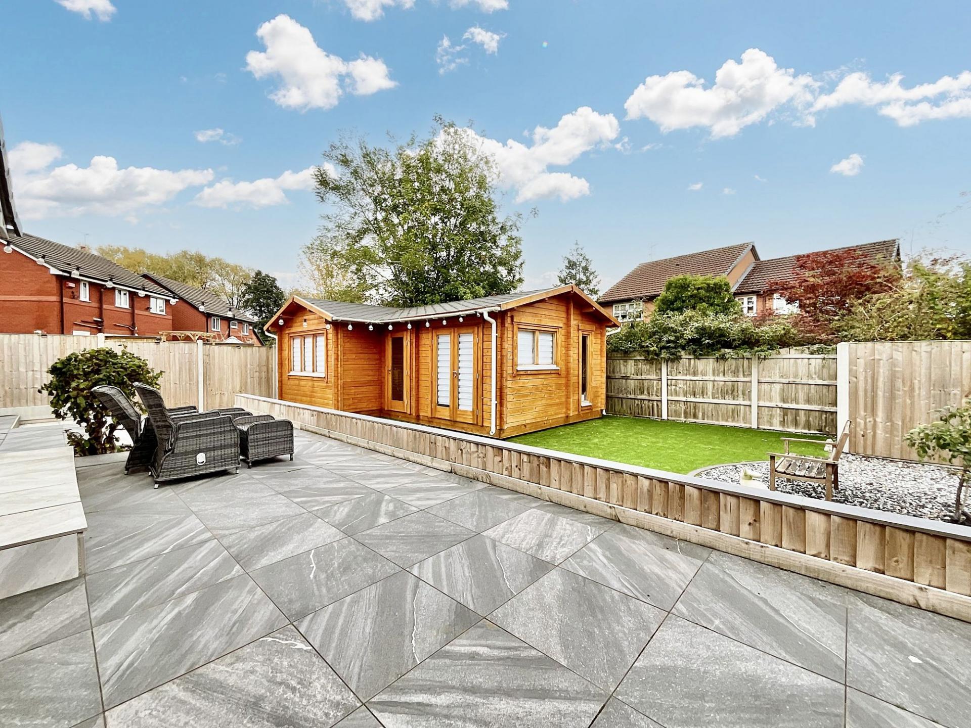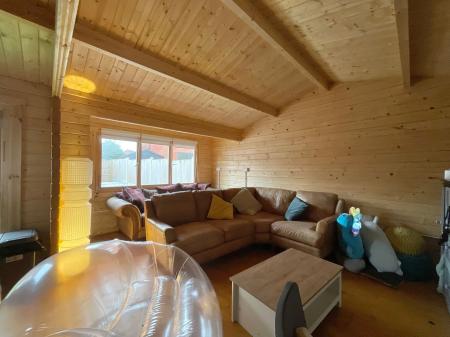 - Large wooden outbuilding with electricity and heating, perfect for use as a home office, gym, studio, or workshop.