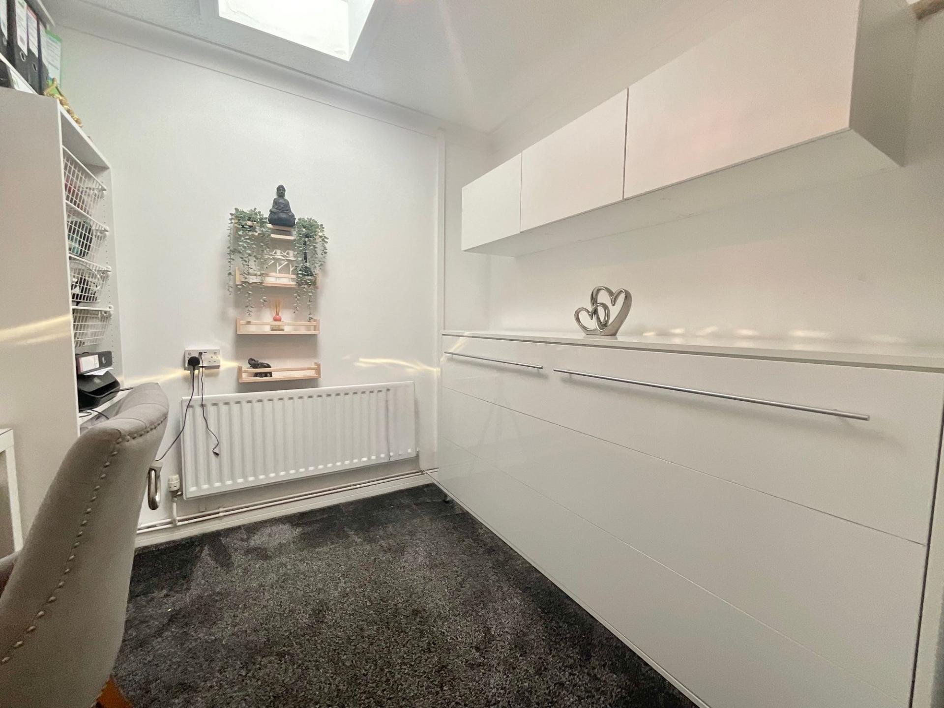 - Four flexible bedrooms, including a main bedroom with direct access to the rear garden and two additional rooms suitable for home office or hobby use.
