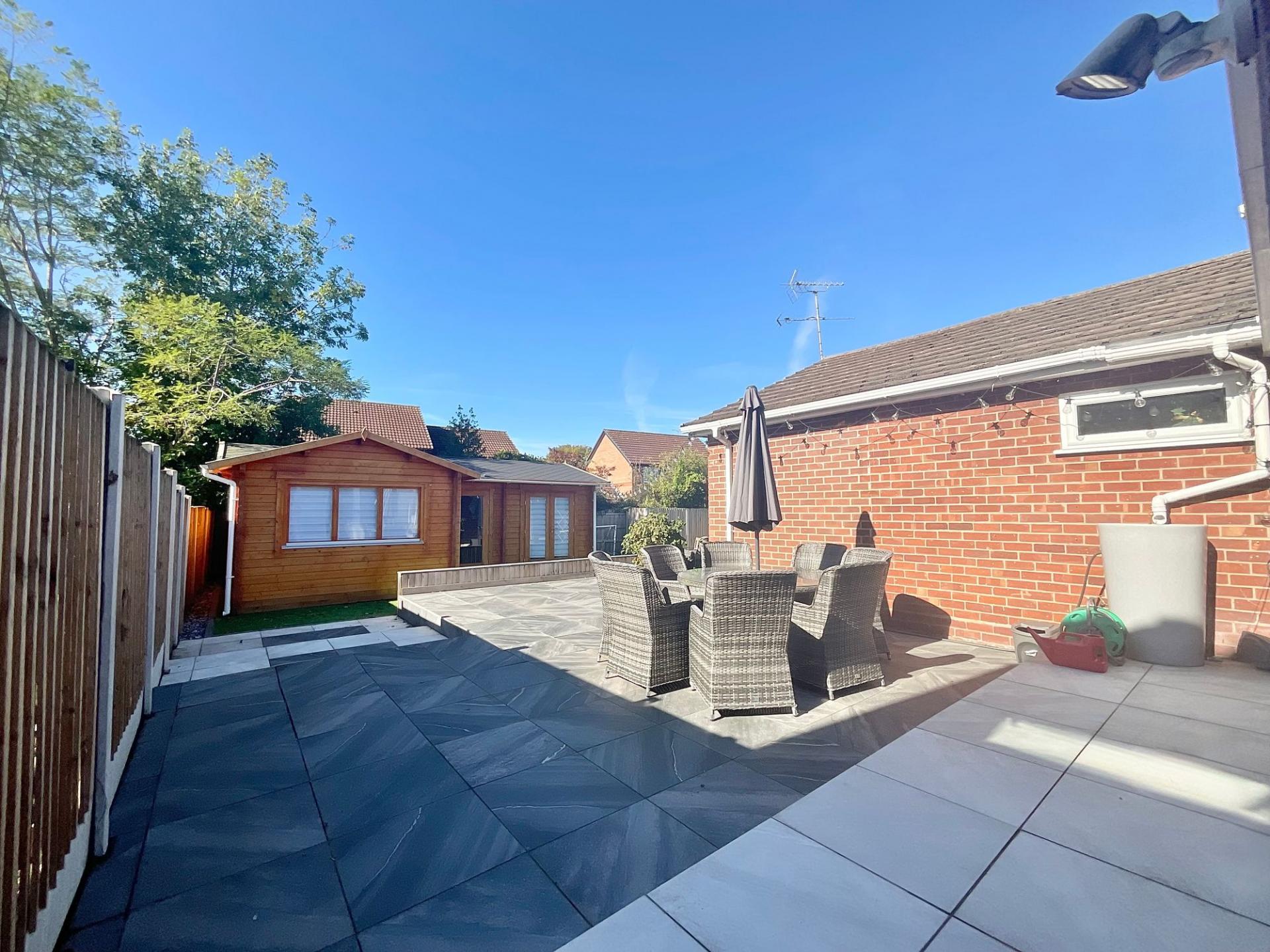 - Sun room with French sliding doors leading out onto a low-maintenance rear patio and garden — ideal for indoor-outdoor living.