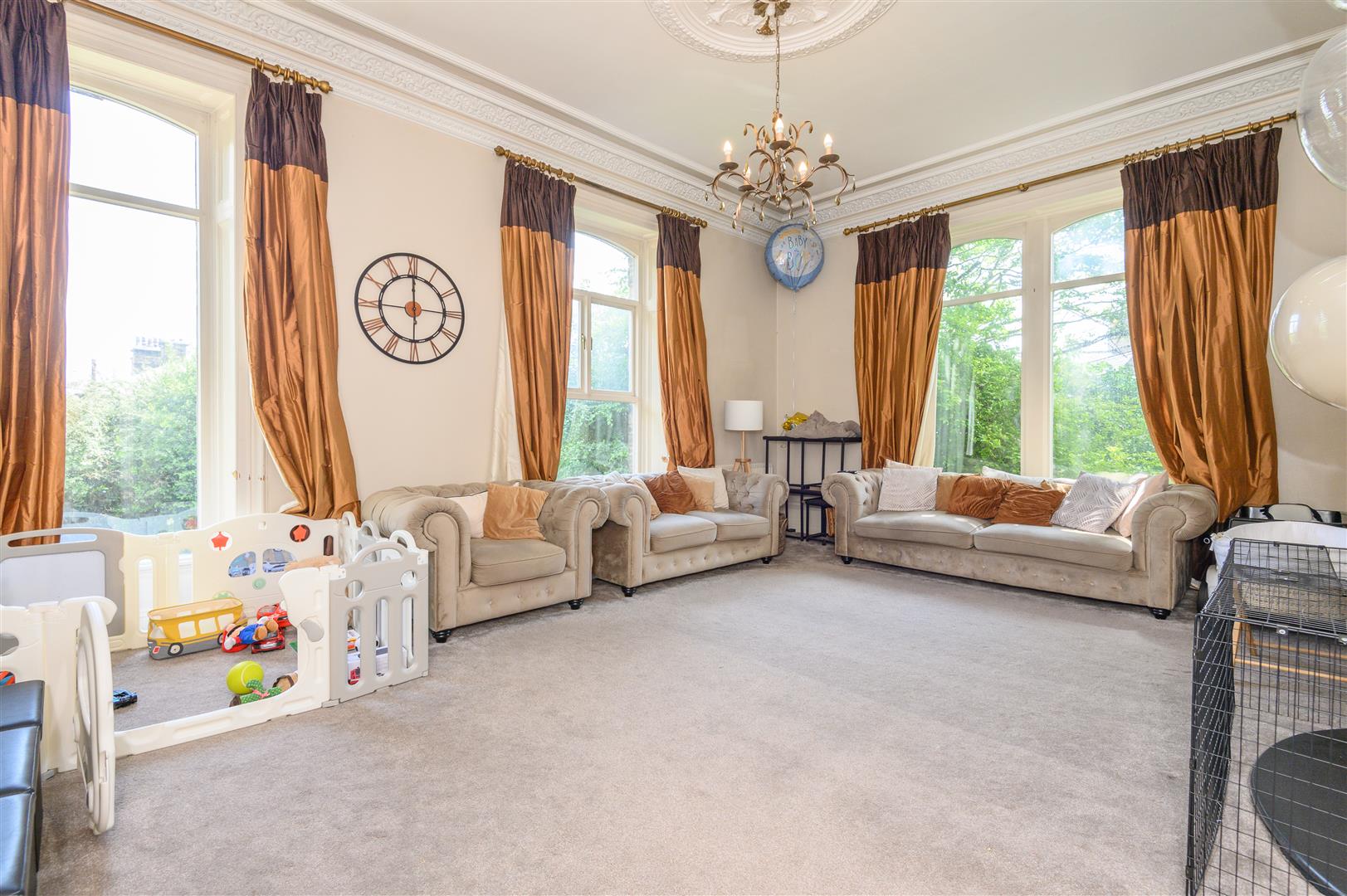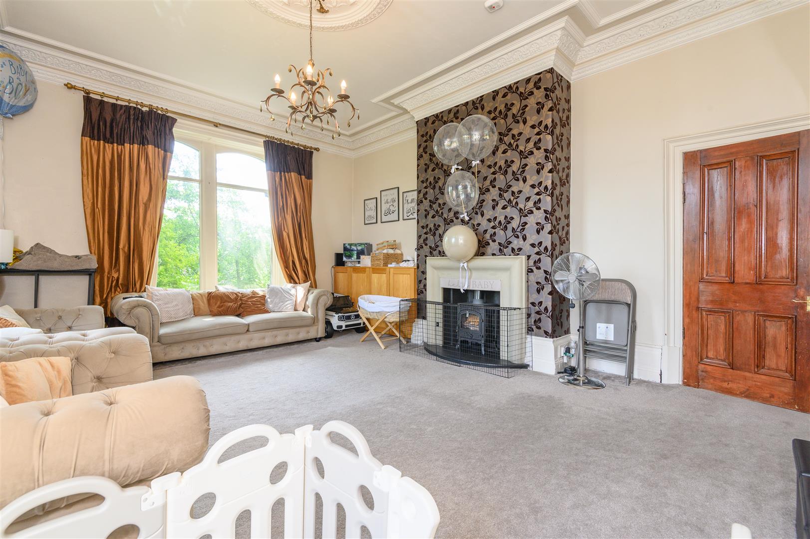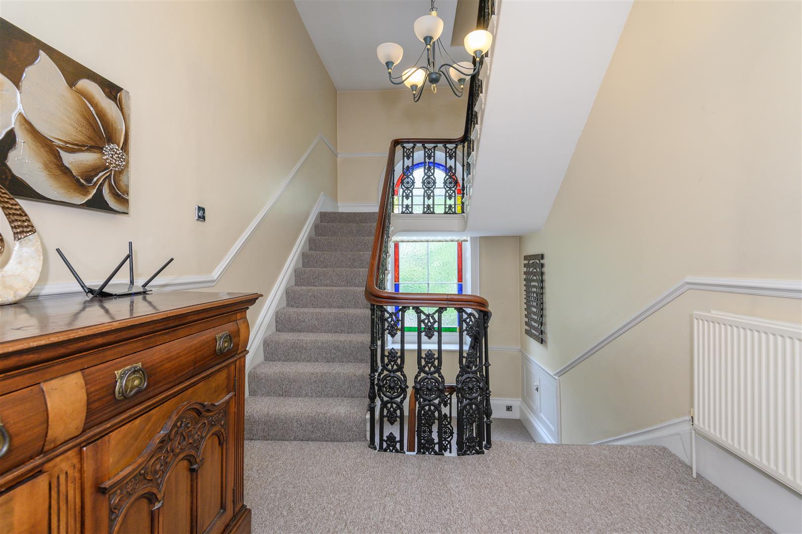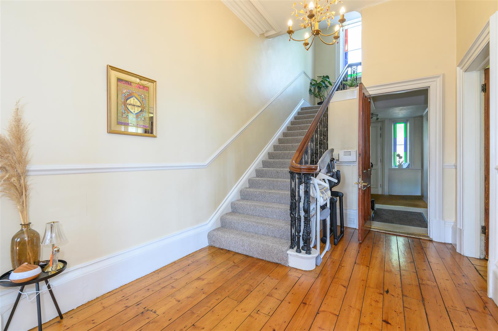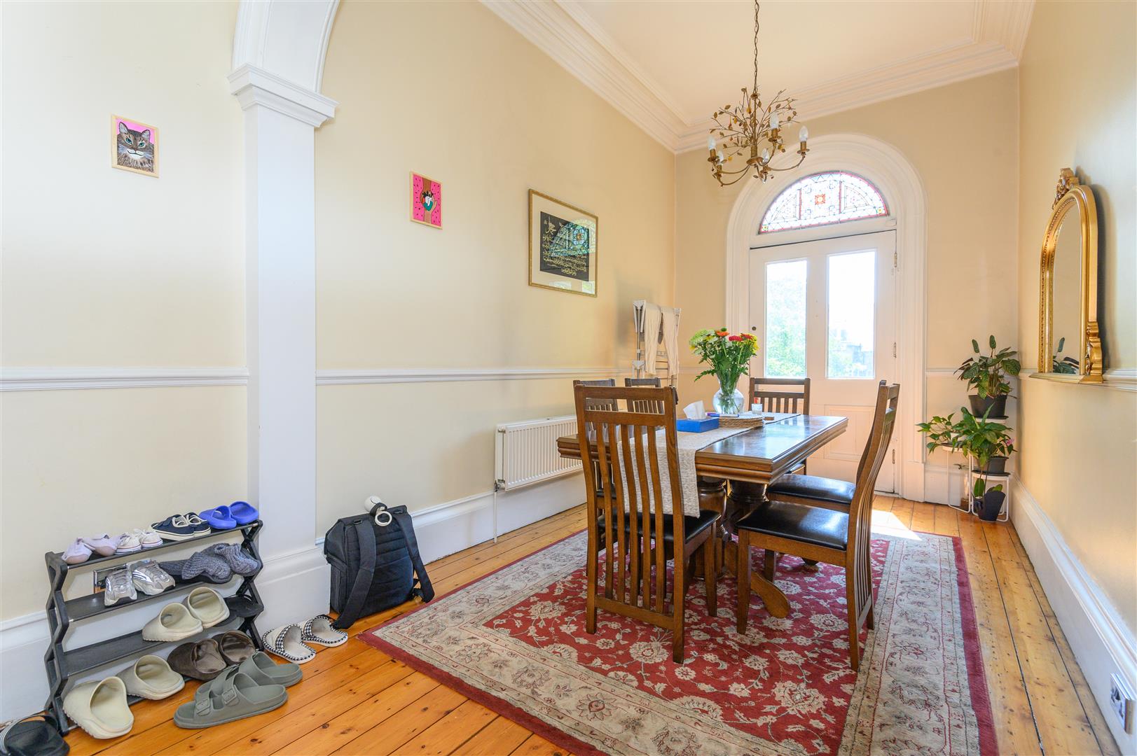 - Beautiful original features including stained glass, ceiling roses, and cornicing