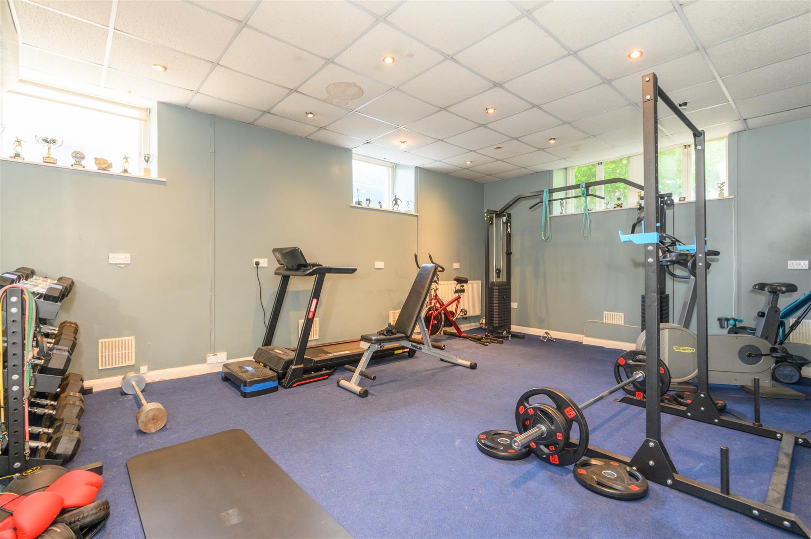 - Two utility rooms, gym space, and large storage room to basement