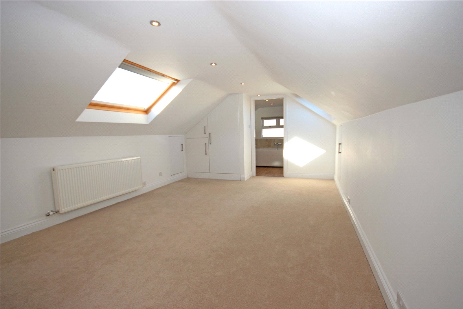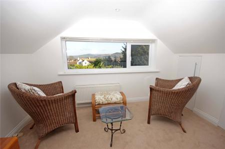 Stairs rise from the kitchen diner to the first floor of the property. To the right is a delightful reading nook/ snug with large panoramic picture window taking full advantage of the expansive views across the Axe estuary and rolling hills beyond. There are several storage cupboards providing access to the eaves, one of which houses the Worcester Bosch gas central heating boiler. To the left-hand side is a sizeable office with large picture window looking out to the front of the property and to the sea in the distance. There is a deep airing cupboard with slatted shelving housing the pressurised hot water tank. A door then leads through to the sizeable main bedroom which benefits from fitted wardrobes to either end of the room with hanging space and shelving alongside two Velux windows. A door then leads through to the en-suite which benefits from a freestanding modern bath with central chrome taps and handheld shower attachment, bowl style hand basin with oak vanity unit below and led mirror above. There is an obscured window looking out to the side of the property, toilet and two heated ladder style towel rails.