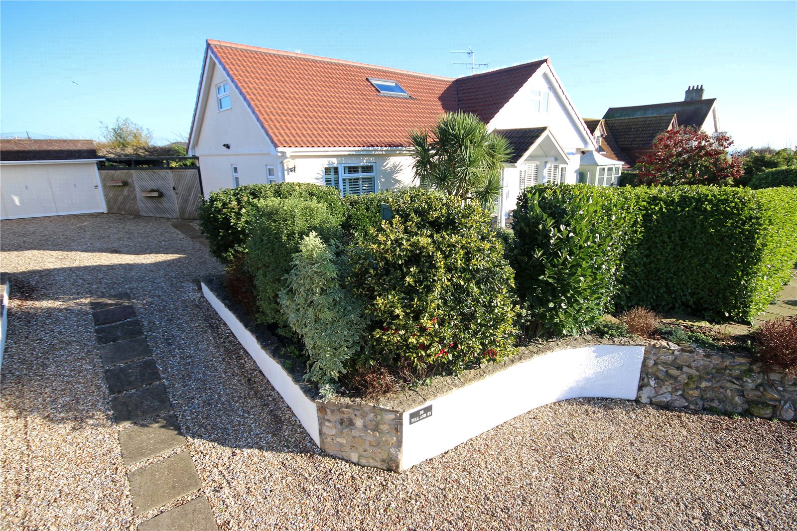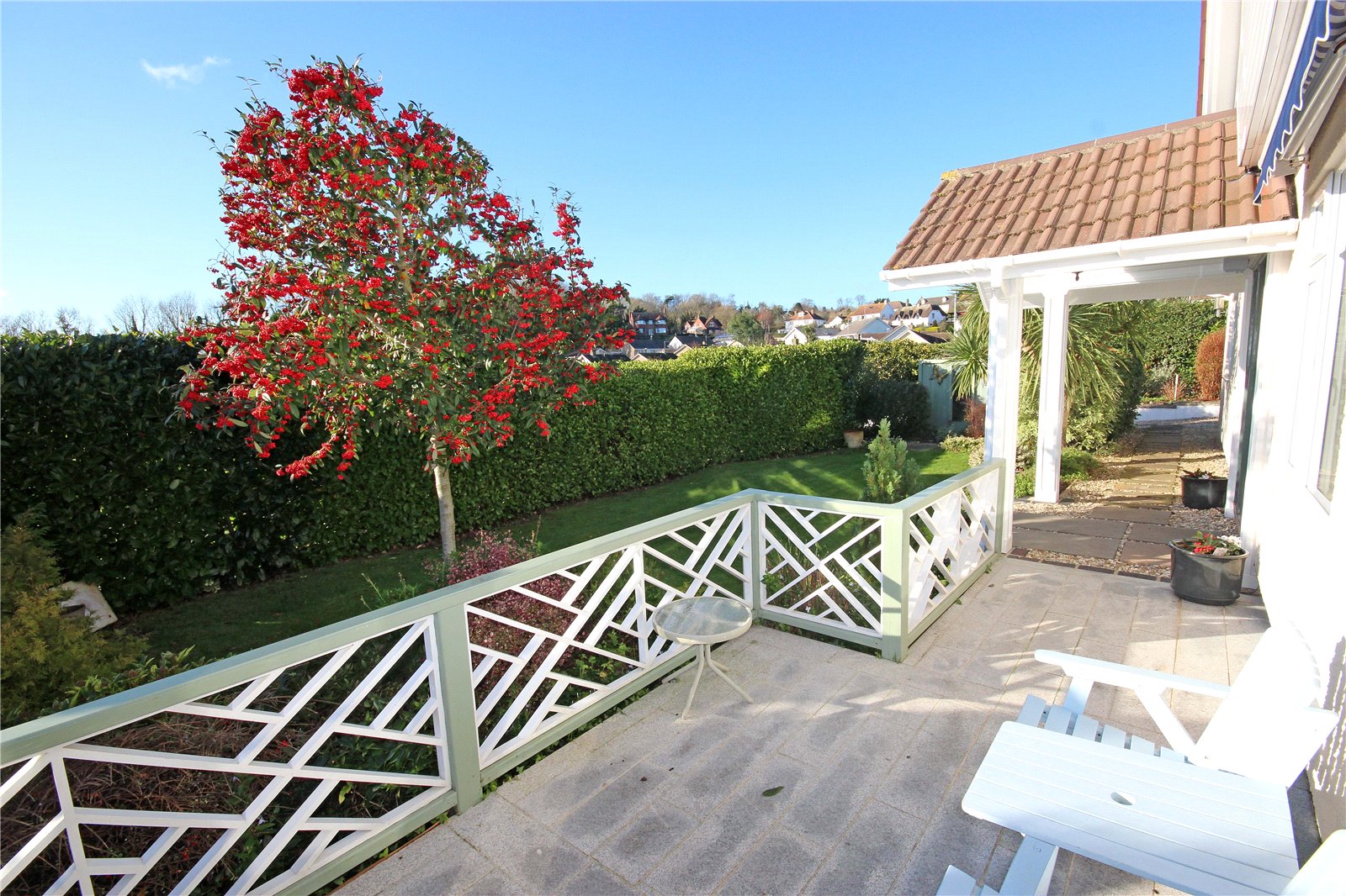 Sliding doors from the kitchen lead out to a covered seating area creating an al-fresco dining space, a pathway then continues to the side of the property to a further patio area accessed from the sunroom and a pedestrian gate providing access to the front garden.