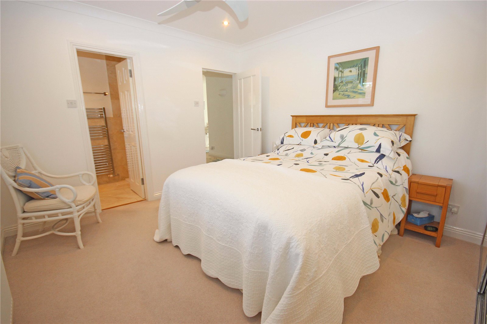 There are a further three bedrooms on the ground floor. Bedroom two is a sizeable double room with a sliding wardrobe spanning the entirety of one wall and an ensuite. The ensuite has a large walk-in shower with rainfall shower head and separate handheld attachment, hand basin with floating vanity unit below, concealed cistern WC, heated towel rail, mirrored medicine cabinet and obscured glass window.