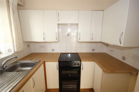 An opening from the living room leads into the kitchen which has a range of matching base and wall units, tiled splashback and sink. There is also space for a freestanding slot in cooker and fridge freezer.