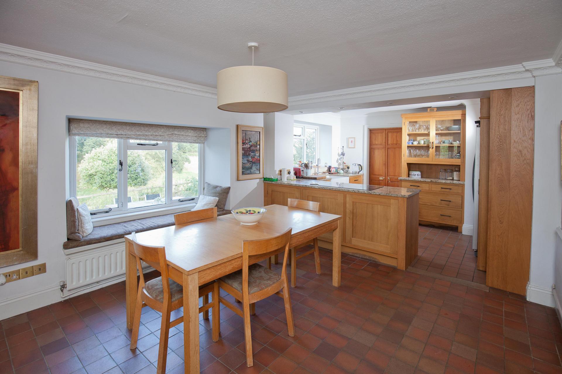 The accommodation is entered via a useful porch with plentiful room for boots and coats before leading through to the main residency. A surprising and welcoming sense of natural light fills the home, none more so than in the double aspect sitting room that is also complimented by a wood burning stove and attractive deep-set windowsills. The kitchen is located within the extension to the property and has been cleverly designed to allow for free flowing entertaining or family lifestyle as the space leads seamlessly into the dining area and additional garden room beyond. Located within the kitchen itself are a number of built in appliances and a double Belfast sink with the utilities for the home being positioned in a separate utility room.