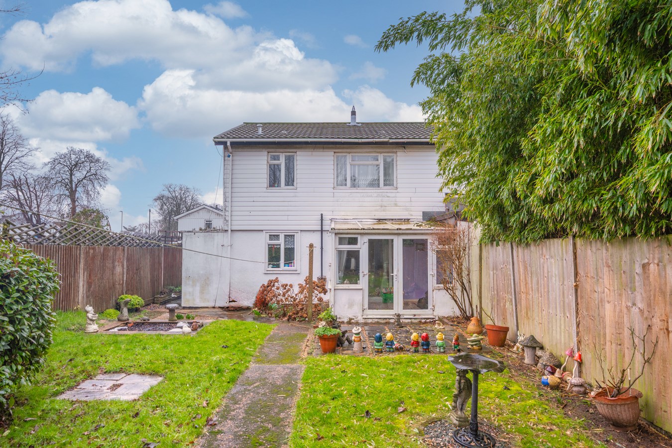 Set back as one of only four houses behind neighbouring properties, the home enjoys a pleasant degree of separation from the road and offers well-proportioned accommodation throughout. The property has been extended with the addition of a rear conservatory, providing a useful extra reception space overlooking the garden. The accommodation comprises an entrance hallway, a good size living room with separate dining room, fitted kitchen, conservatory, and a downstairs cloakroom. To the first floor are three well-balanced bedrooms and a family bathroom. Although now in need of some modernisation, the property offers excellent potential for improvement and extension (subject to the usual consents), making it an ideal purchase for those looking to create a long-term family home or investment opportunity.