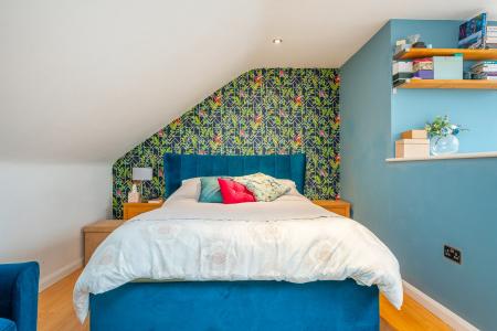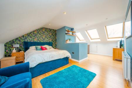 One of the standout features of this home is the impressive loft conversion which has created a truly substantial principal bedroom suite. This space is far larger than many you will see locally and comfortably accommodates a sleeping area along with a sofa/TV space, creating a real retreat at the top of the home. The room also benefits from its own ensuite shower room and useful eaves storage.