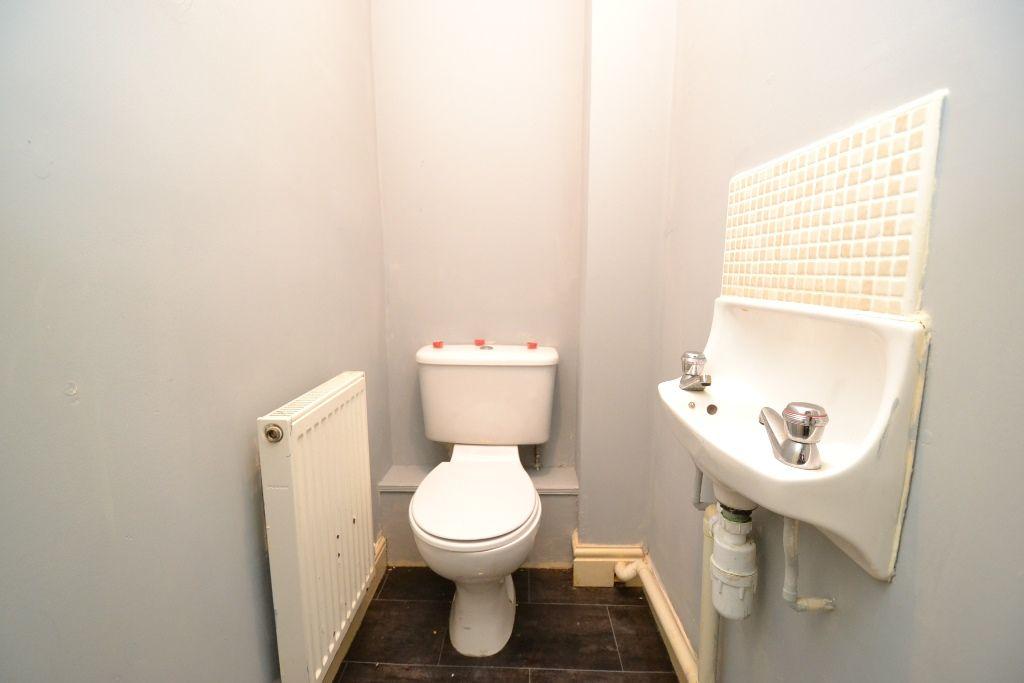 CLOAKS WC: Wash basin and wc in white, ch radiator.