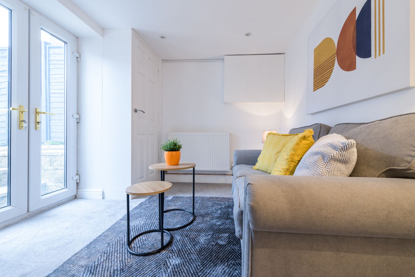 Basement Snug Room: 3.13m x 2.73m (10'3 x 8'11). Upvc dg French doors, cupboard houses the Glow Worm condensing boiler, radiator, inset ceiling lights.