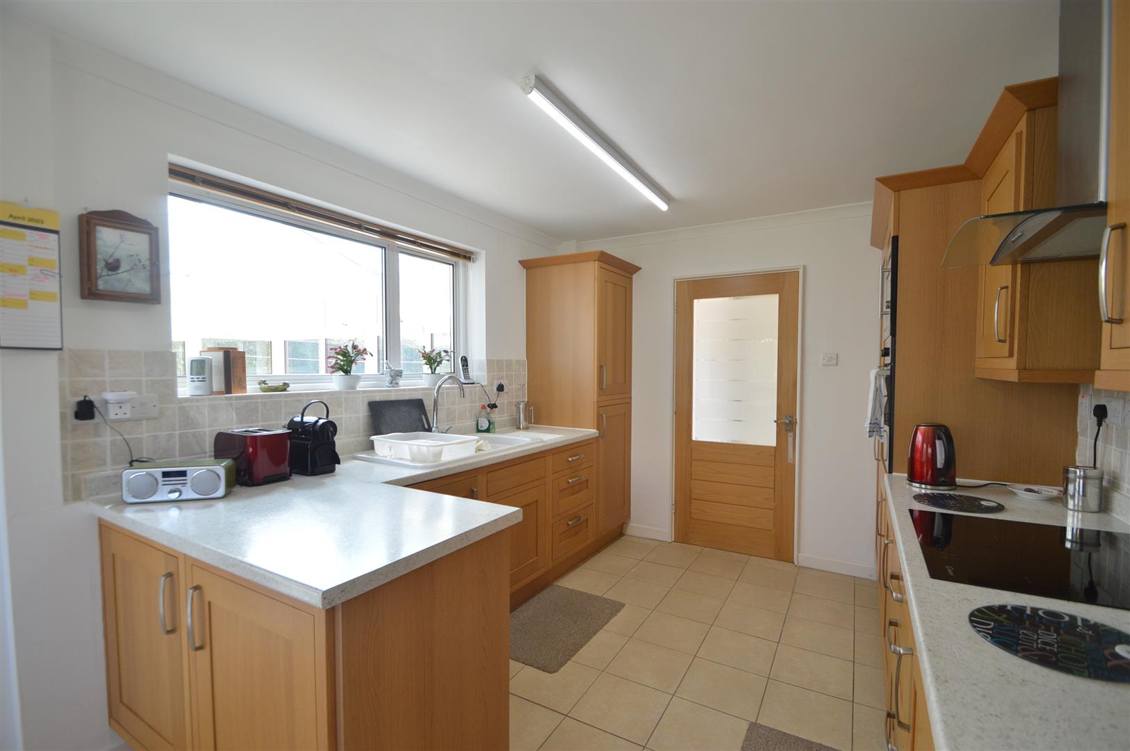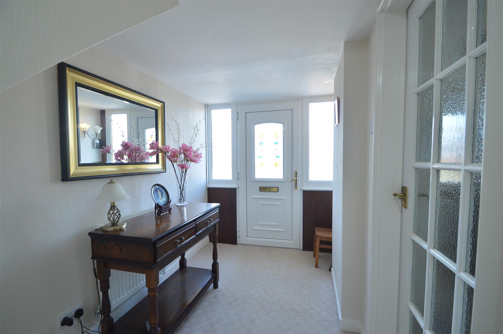 The property is approached over a spacious driveway providing ample parking and access to the garage. Neatly kept front garden laid to lawn with floral border.