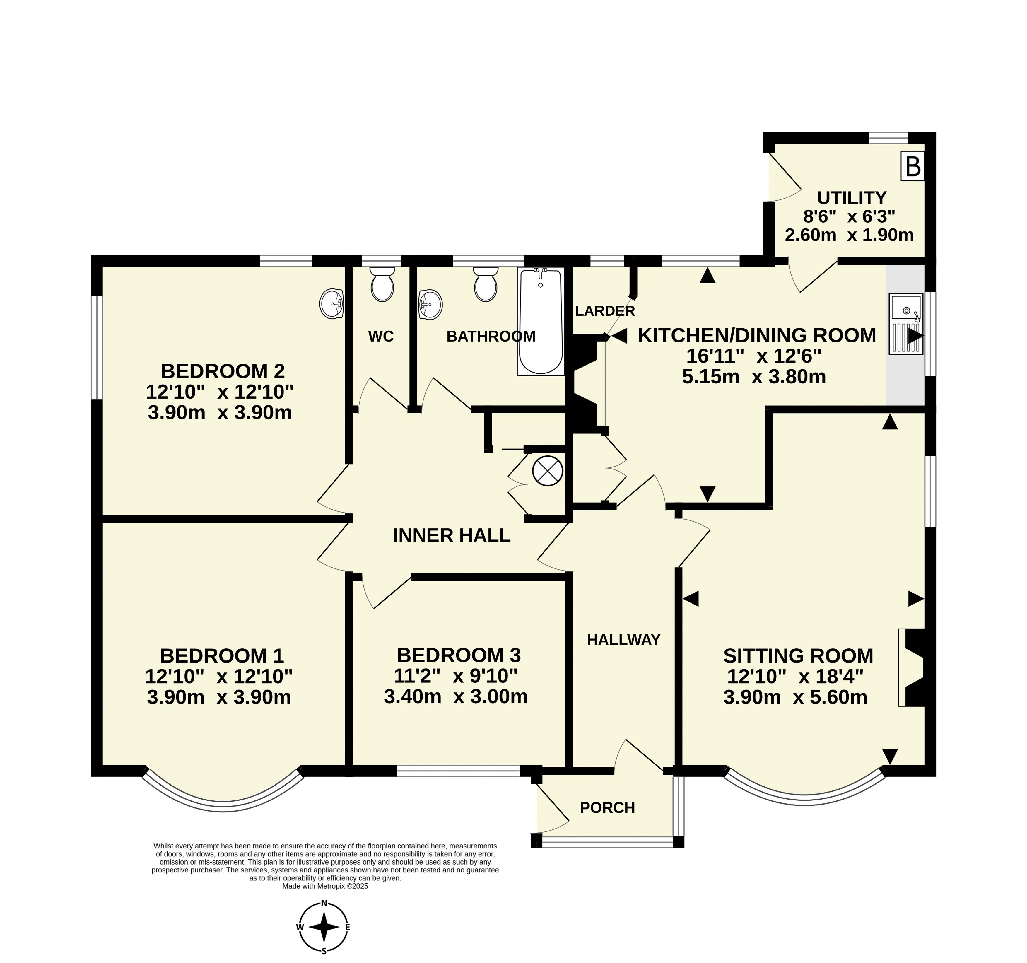 A spacious inner hallway leads to three bedrooms, a bathroom and separate WC. The main bedroom enjoys a south facing bay window, the second bedroom is of equal size and dual aspect to the side and rear. Finally, there is a third double bedroom enjoying the south facing front aspect.