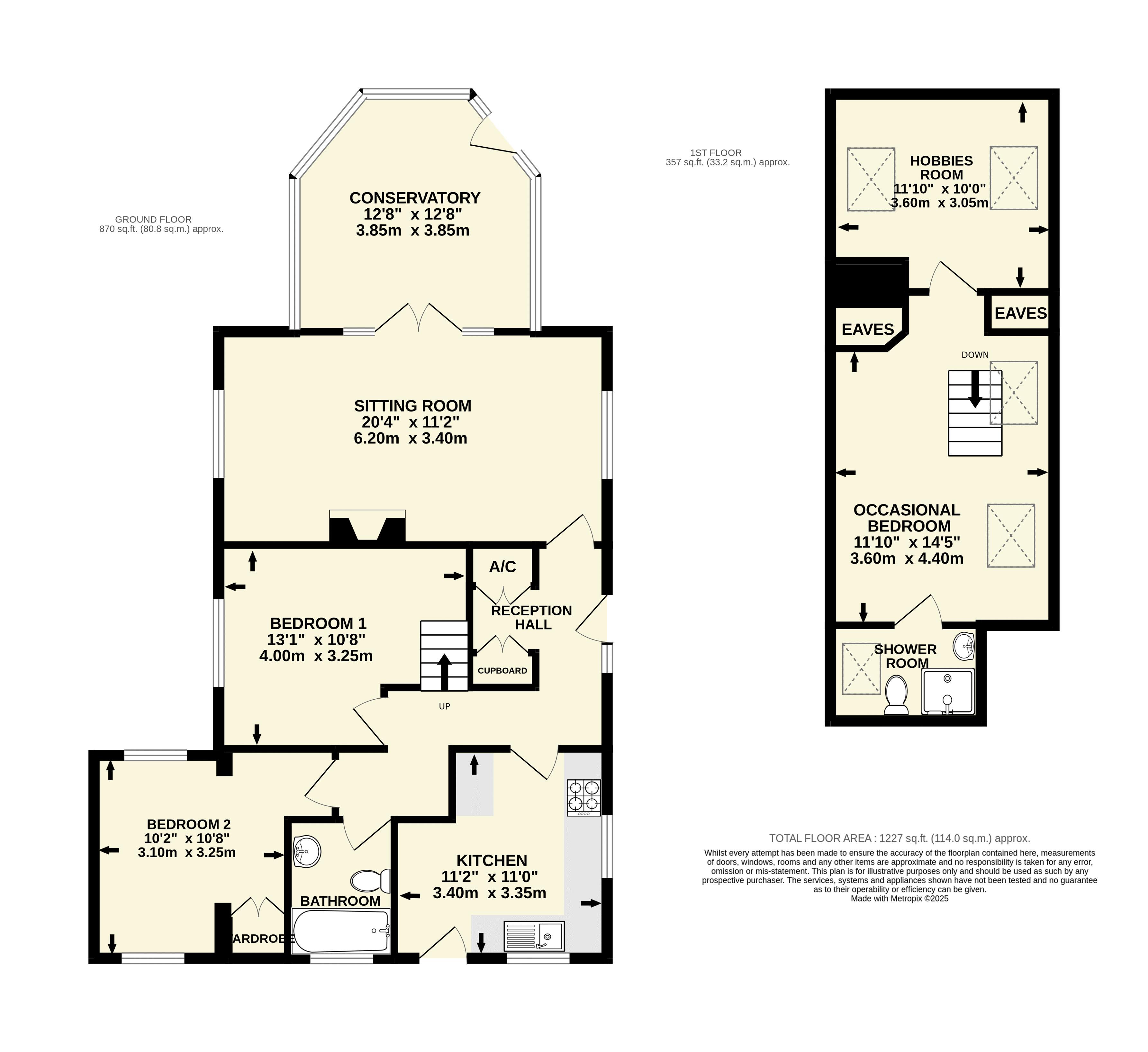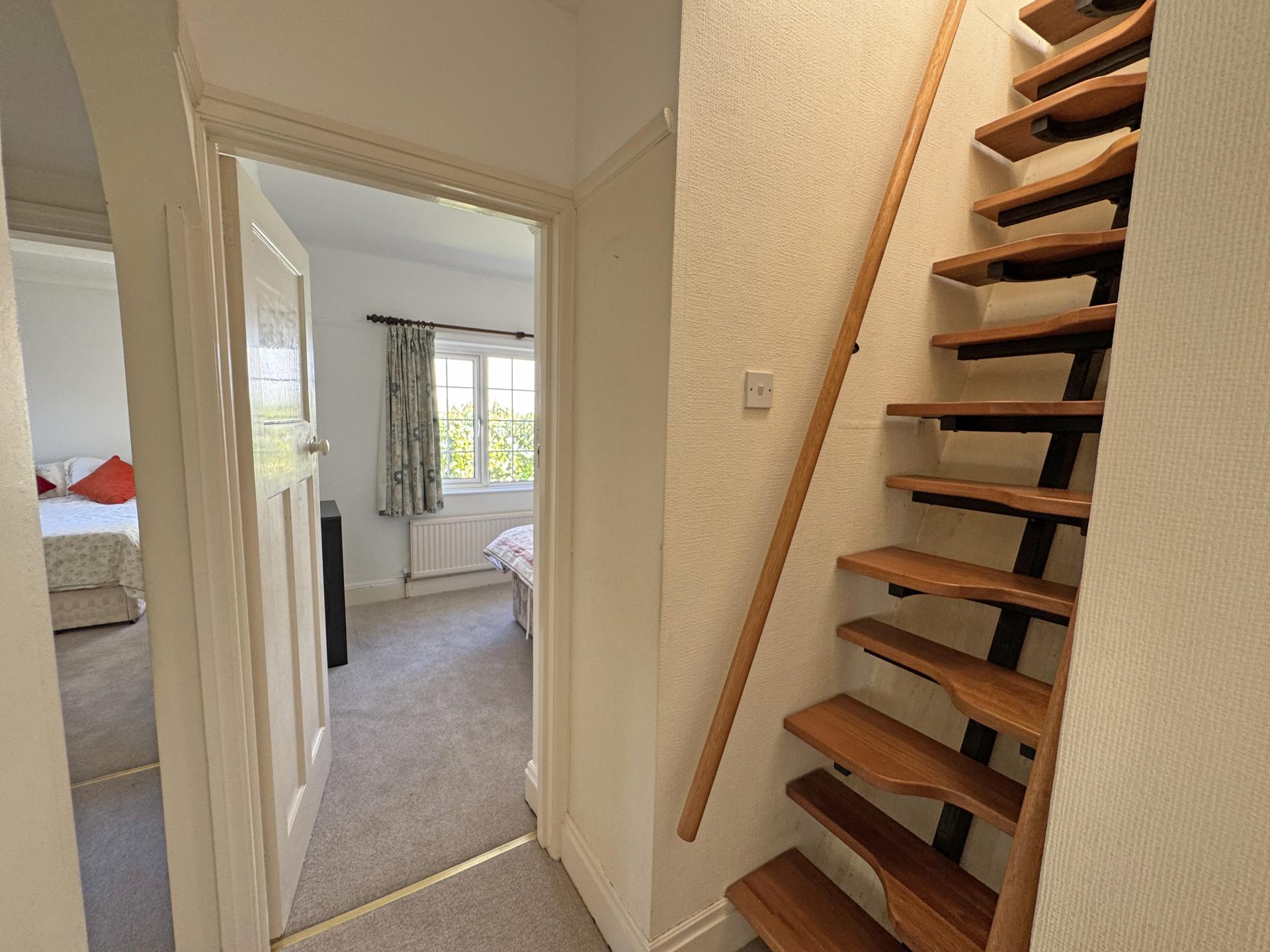 During the 1990’s, the accommodation was extended into the roof space. This has created two further rooms with Velux windows, one currently being used as a study/hobbies room whilst the other an occasional bedroom with en suite shower room. This area is accessed via a single tread staircase with handrails which is fairly steep and rises from the reception hall.