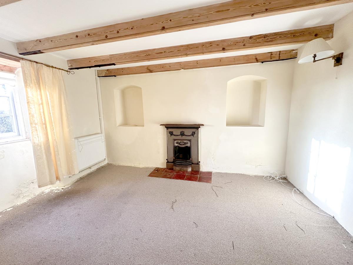 Lounge - 3.96 x 3.96 (12'11" x 12'11") - A characterful room with inglenook fireplace, with granite lintel over and woodburner (not tested) set on a tiled hearth. There is a built-in storage cupboard, beamed ceilings, wood effect flooring and a sliding sash window to the front aspect.