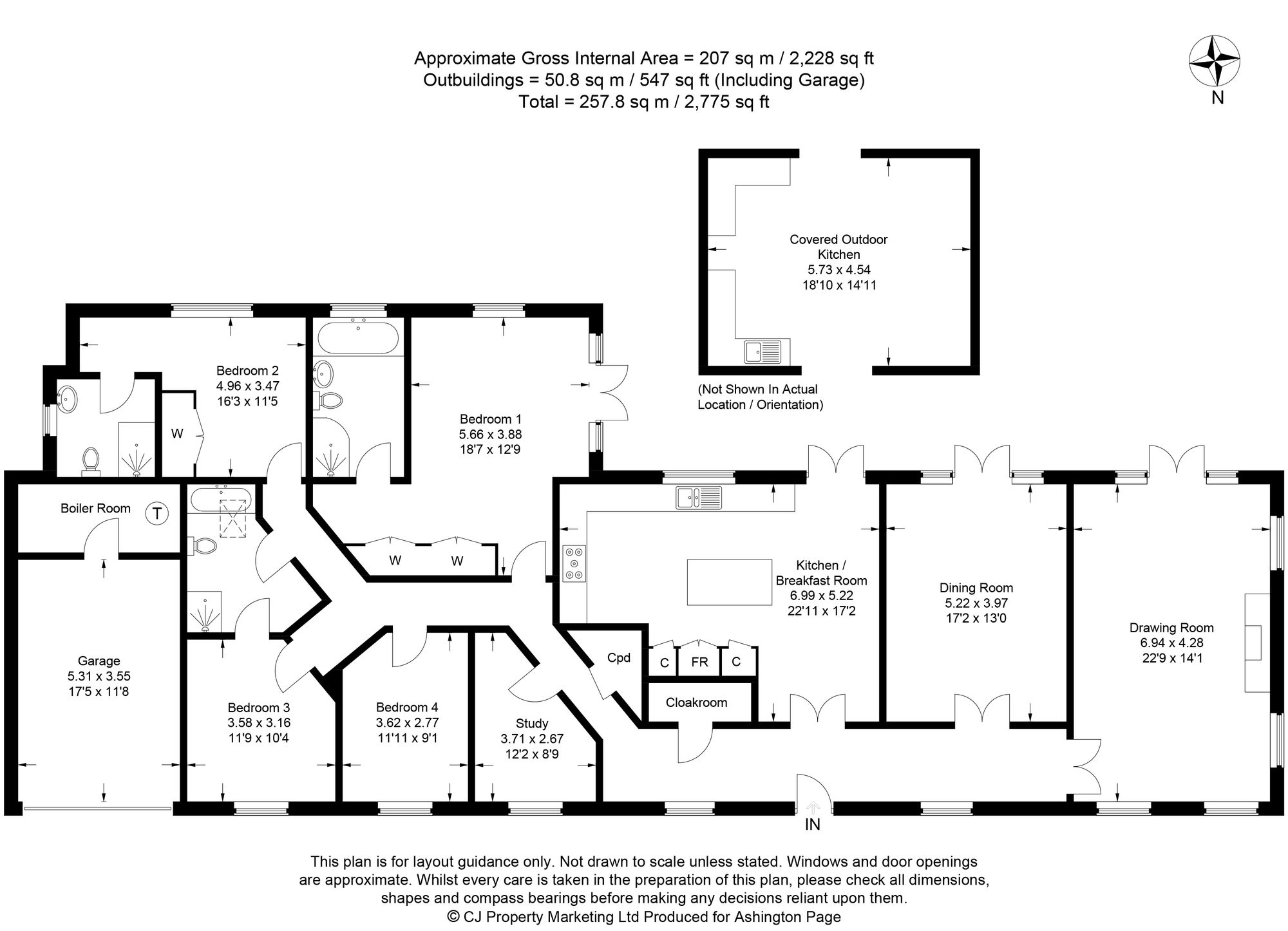 - Large Covered Outdoor Kitchen With Plumbed In Sink, Light, Power And Wall Mounted Electric Heaters