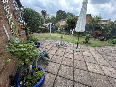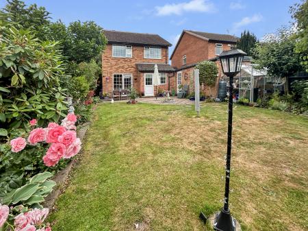 ENCLOSED REAR GARDEN Attractive lawned garden with paved patio areas. A delightful space with well stocked borders hosting a variety of plant, trees and shrubs. A vegetable patch and greenhouse.