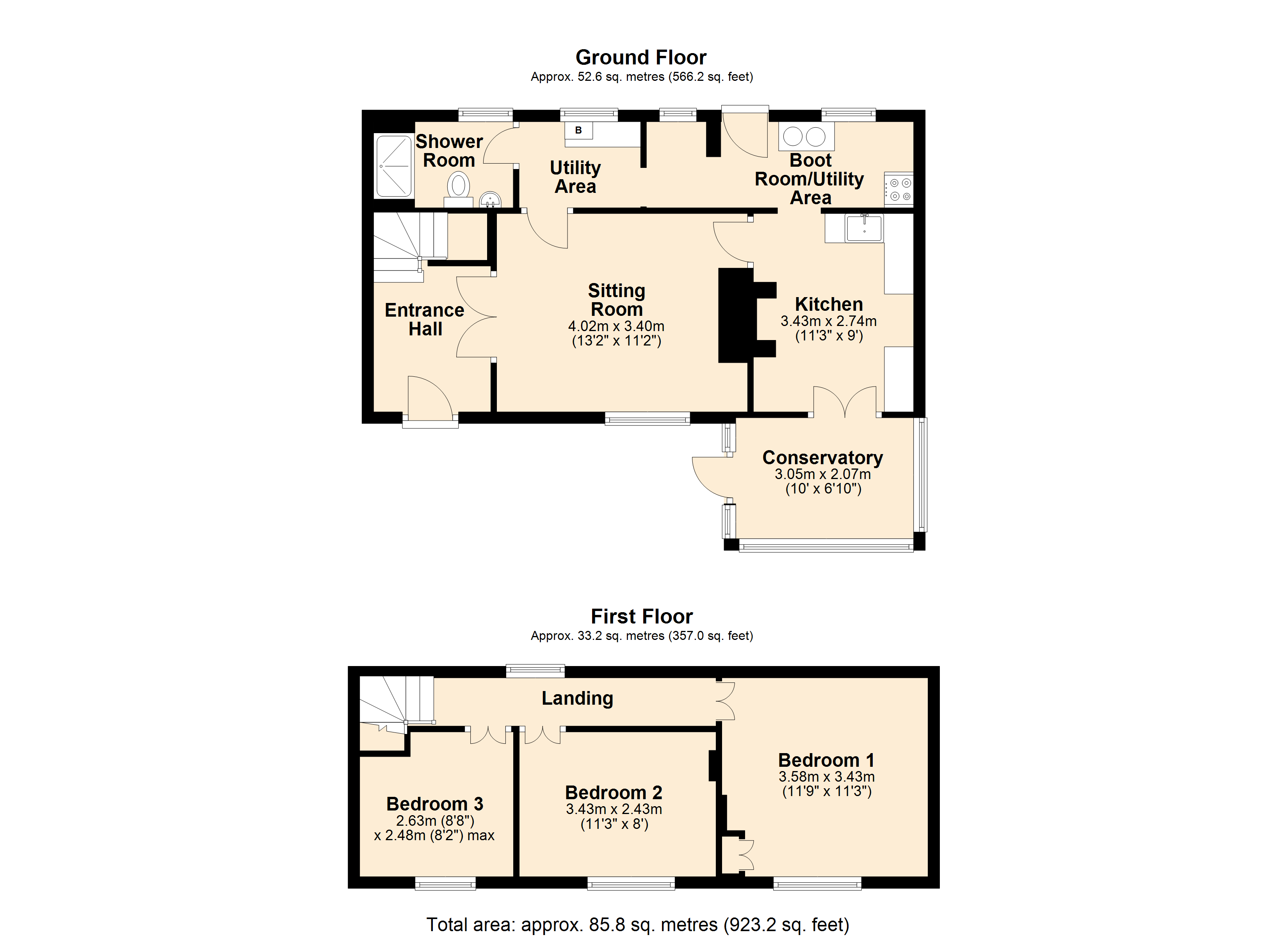 Doors from both the kitchen and sitting room lead to a long rear hallway/utility area, which also provides access to the downstairs family shower room and rear garden.
