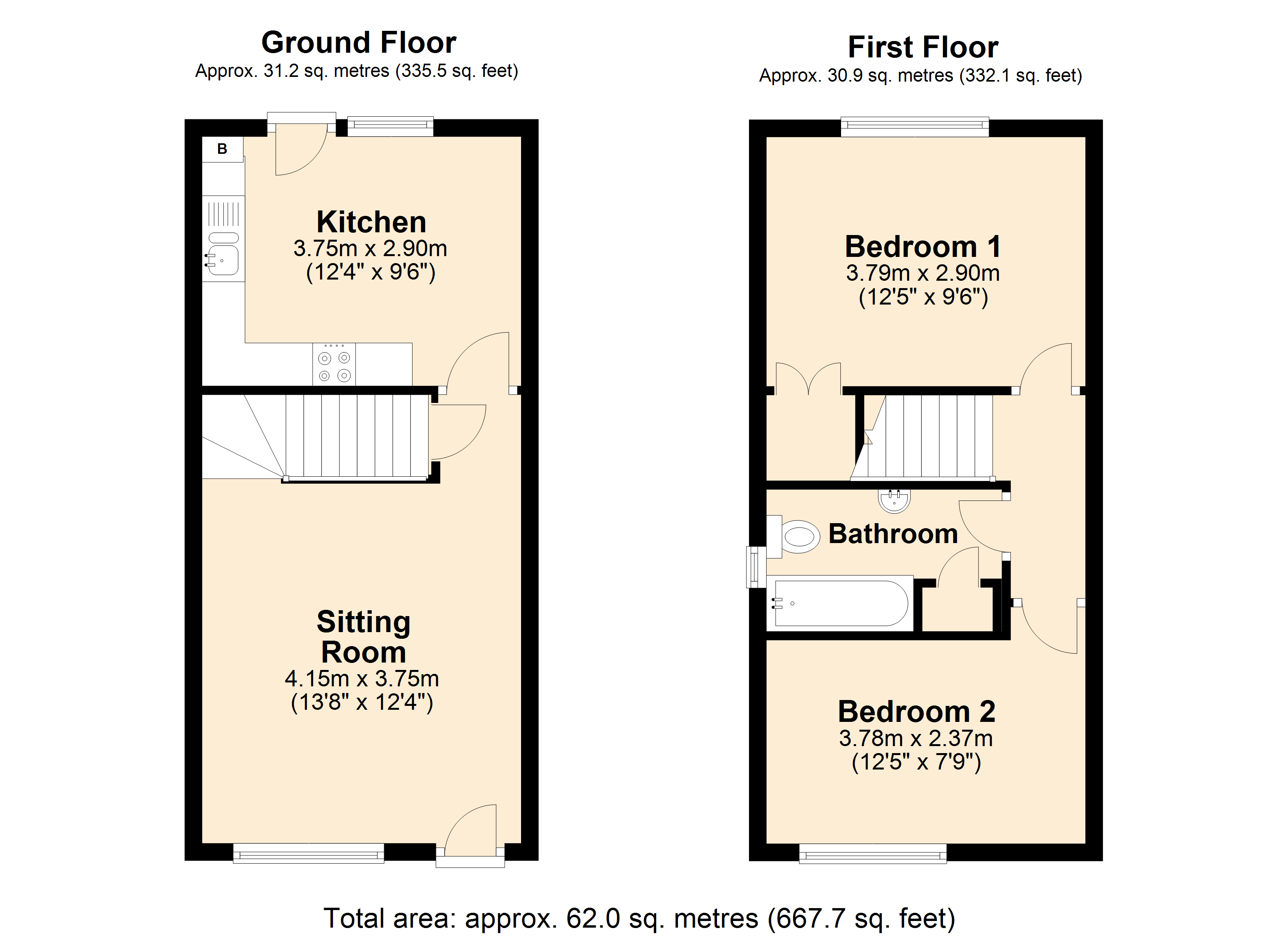On the first floor, there are two generously sized bedrooms, both served by a family bathroom.