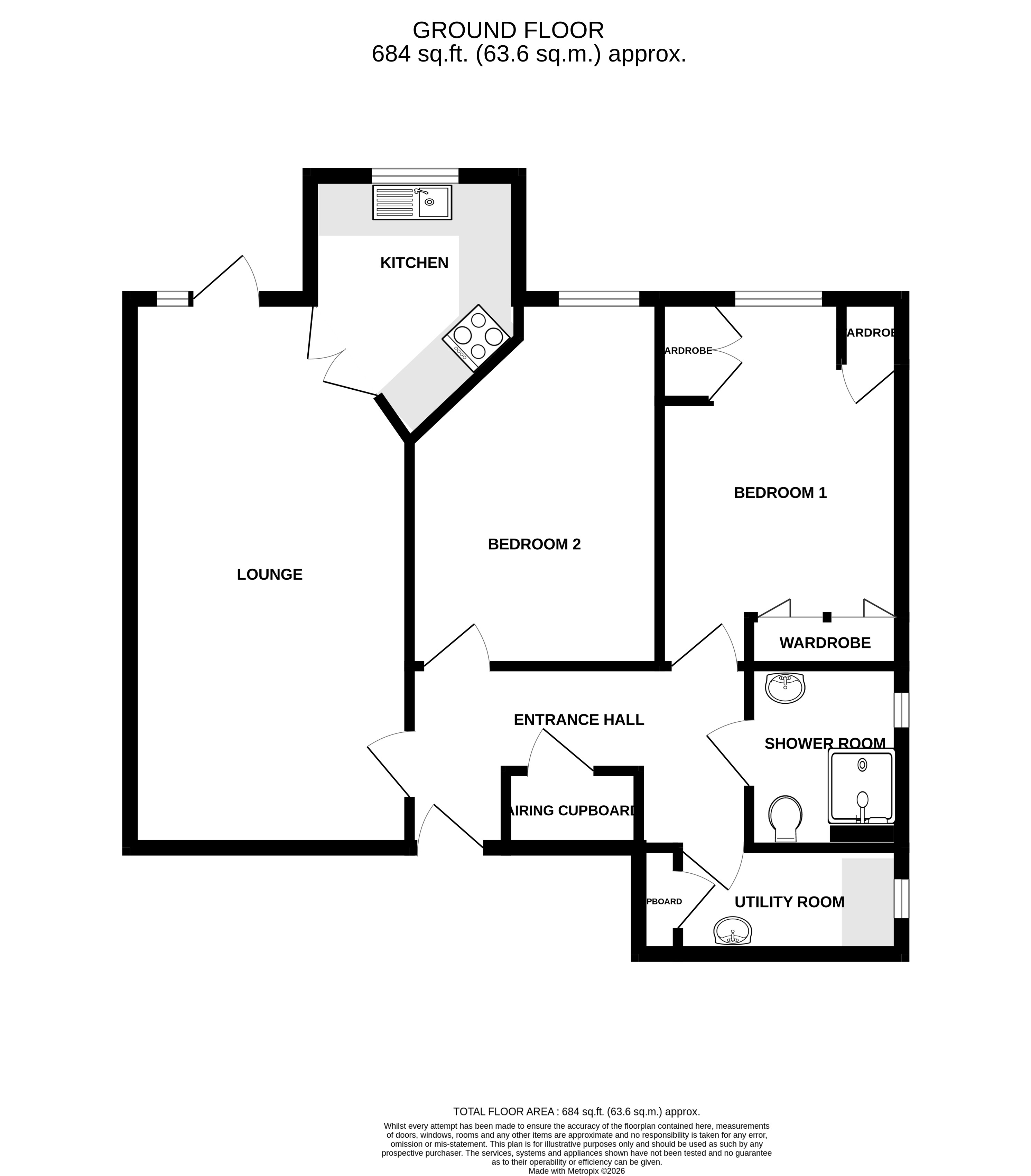 There are two well-proportioned bedrooms, the main bedroom featuring a selection of fitted wardrobes, bedroom two provides flexibility for guests, dining or hobbies or a home office, along with a separate shower room. A separate Utility has space and plumbing for a washing machine, previously a W.C. with the provisions in place for it to be converted back to this is requiring and additional toilet.