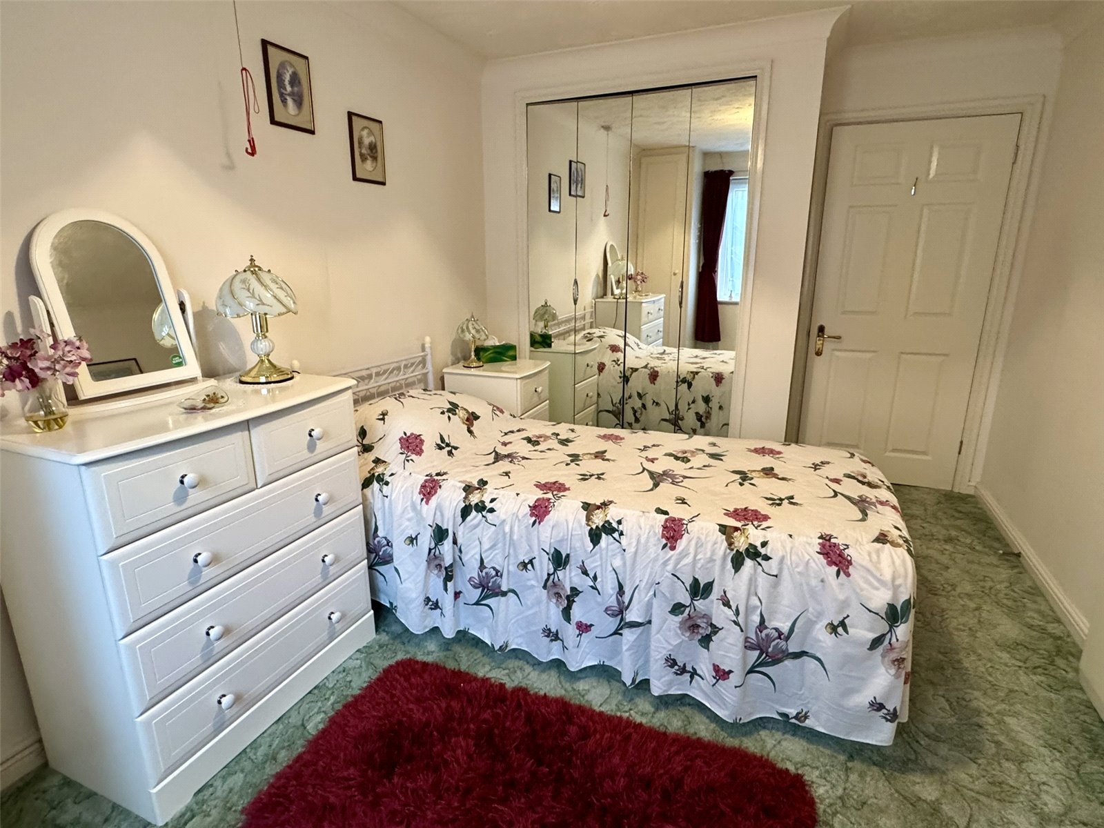 Bedroom One 13'9" (4.20m) x 9'2" (2.80m) including wardrobes. Fitted mirror fronted wardrobes, further fitted double and single wardrobe. Electric night storage heater, TV aerial and double glazed window to the rear aspect.