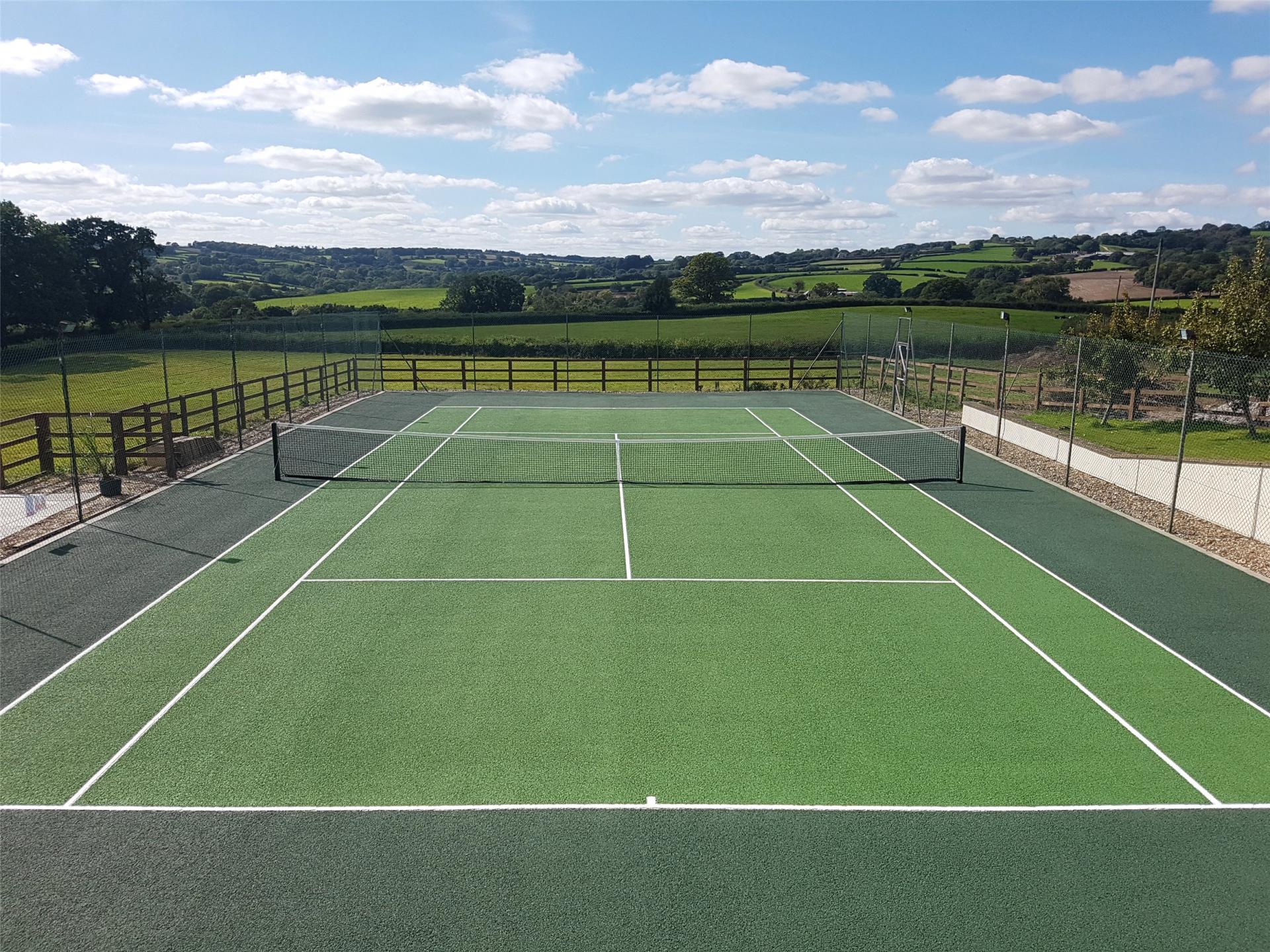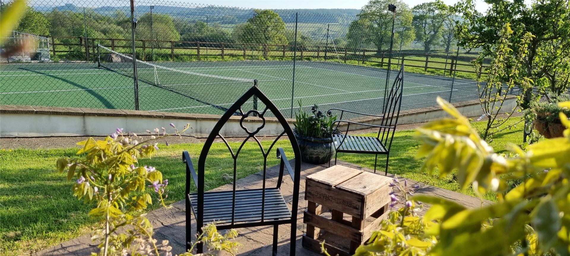 • Heated outdoor swimming pool and full-size tennis court