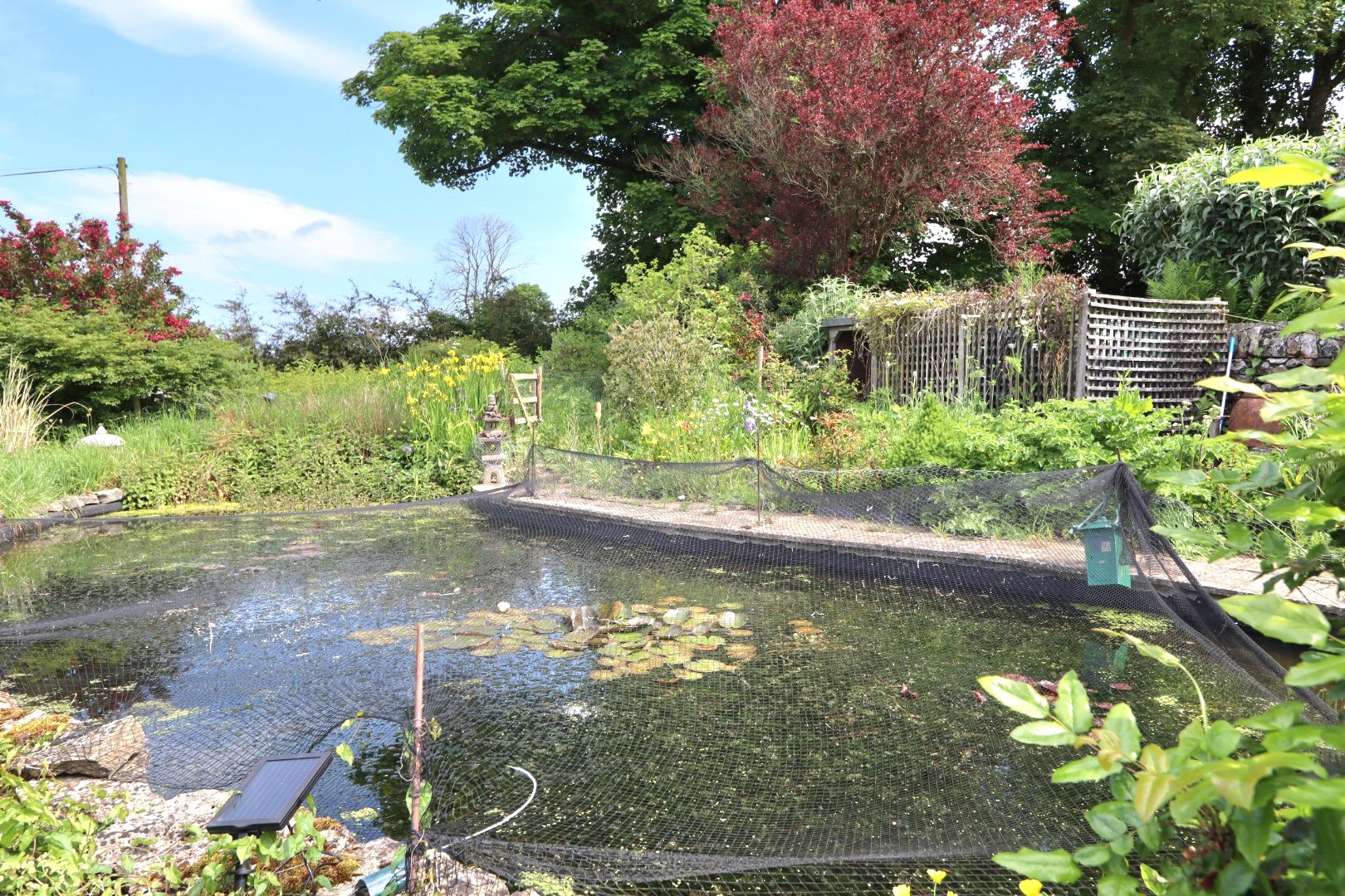 On the side of Orchard Barn lies the enchanting 'spring garden,' a picturesque expanse of lawn framed by shrubs, various trees, and lush bushes. Just beyond lies the pond garden, complete with a splendid ornamental pond featuring a soothing water feature, all safely enclosed by fencing.
