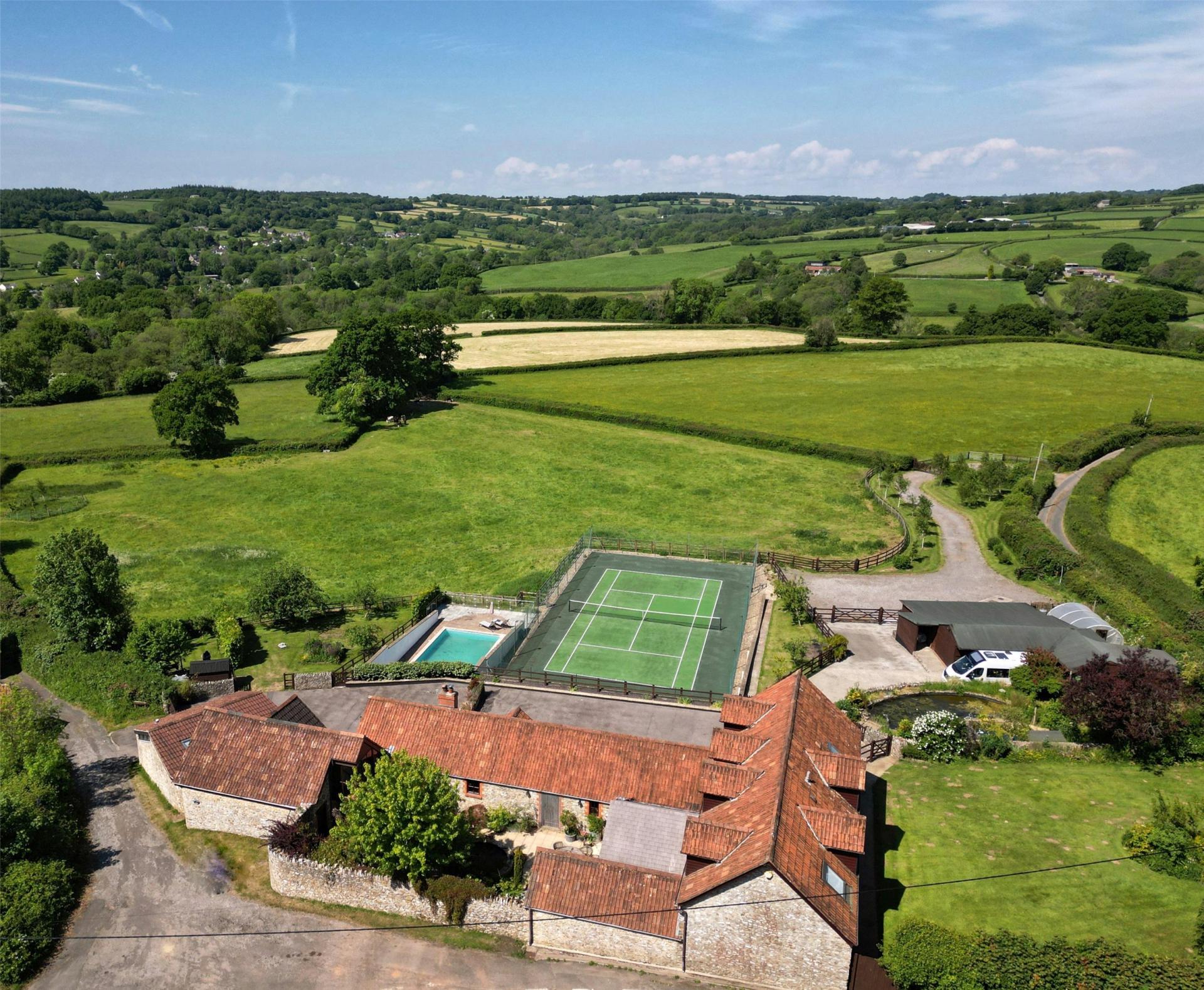 Orchard Barn presents an exceptional lifestyle and equestrian opportunity, unlike any other. This stunningly converted 5-bedroom stone barn is nestled within 4 acres of picturesque countryside of the Blackdown Hills. For those who don’t want to manage the land a local farmer currently manages it on an informal basis and is happy to continue.