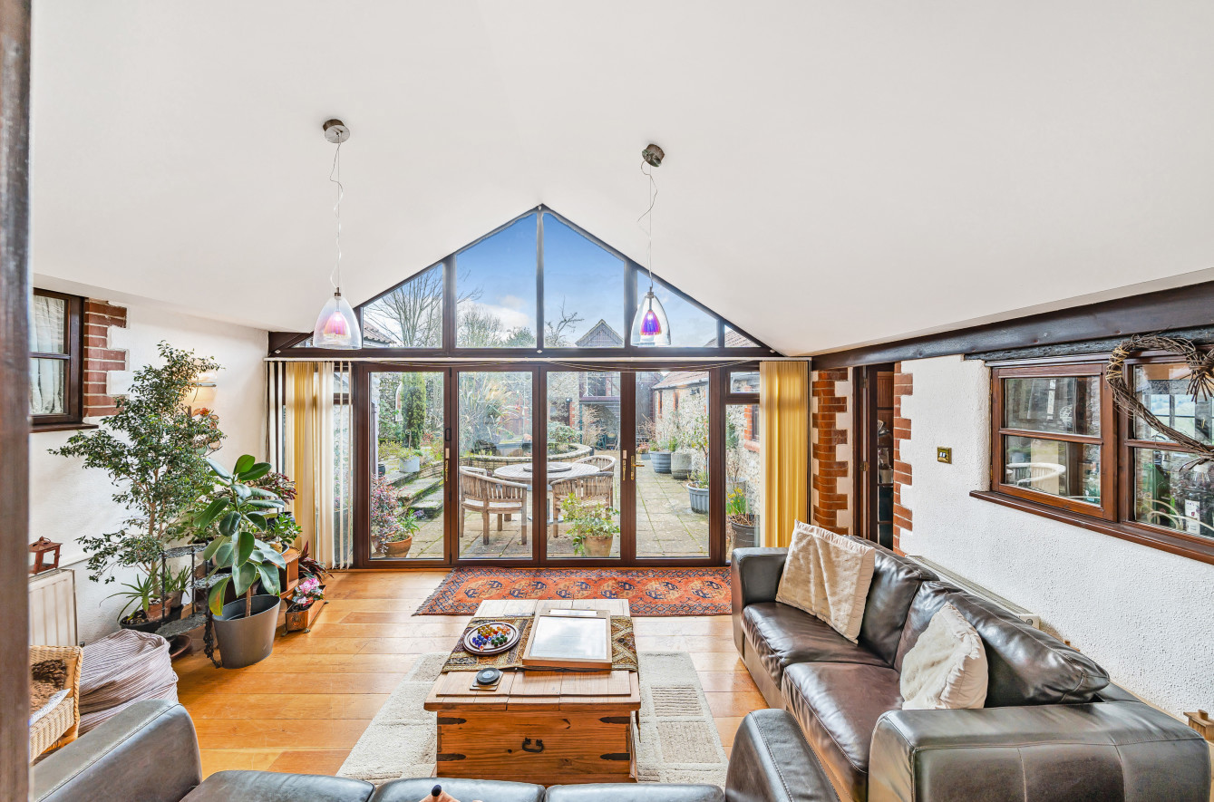 This carefully converted barn was designed to create a flexible living space that allows you to spread out and have your own space for living and working in. The heart of the home is the welcoming farmhouse style kitchen/breakfast room with electric Aga – flowing from this room is the garden/sun room that overlooks the courtyard proving to be an ideal space for capturing afternoon sun.