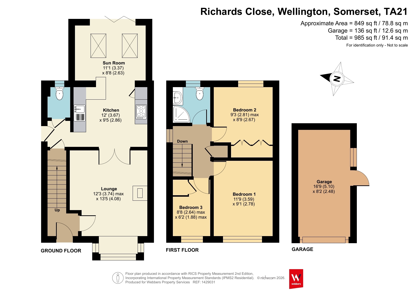 Outside, the property benefits from driveway parking leading to a single garage with an electric roller door, power, light and further storage above. The enclosed rear garden features a newly laid patio and backs onto open fields, offering a pleasant sense of space and privacy.