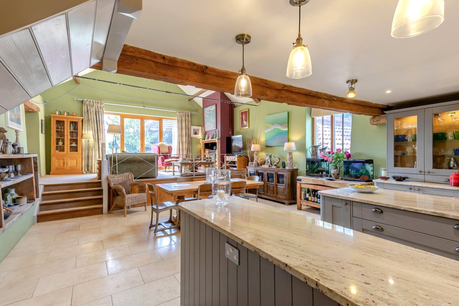 - Four double bedrooms and generous ground floor living space in main farmhouse