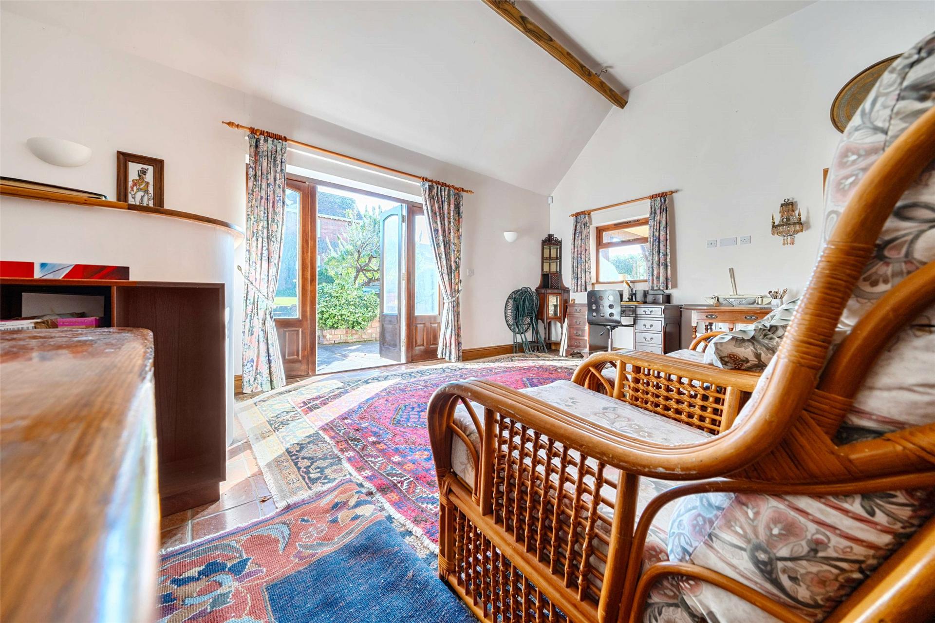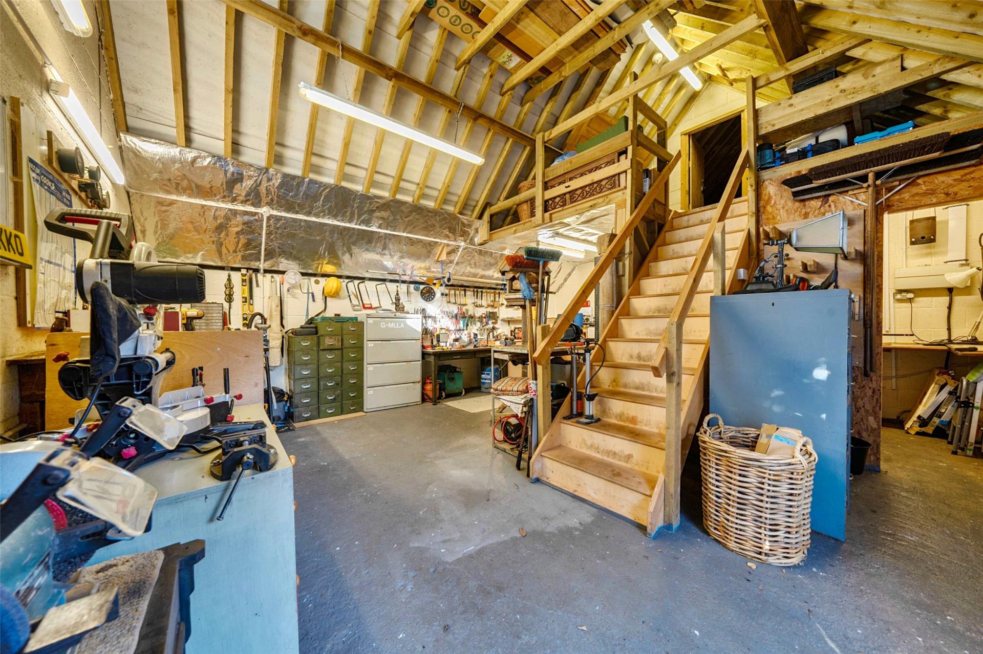 The detached garden studio is a major additional attraction and adds another layer of versatility to the property. Brick built and sympathetically converted, it is now arranged to provide an entertainment room, a separate WC and an adjoining workshop with loft storage above. It is a highly flexible space that could support a range of hobbies, leisure interests or work from home needs, all separate from the main house. In addition, there is a further workshop or storage outbuilding to the side with electricity and an exterior cold water tap.