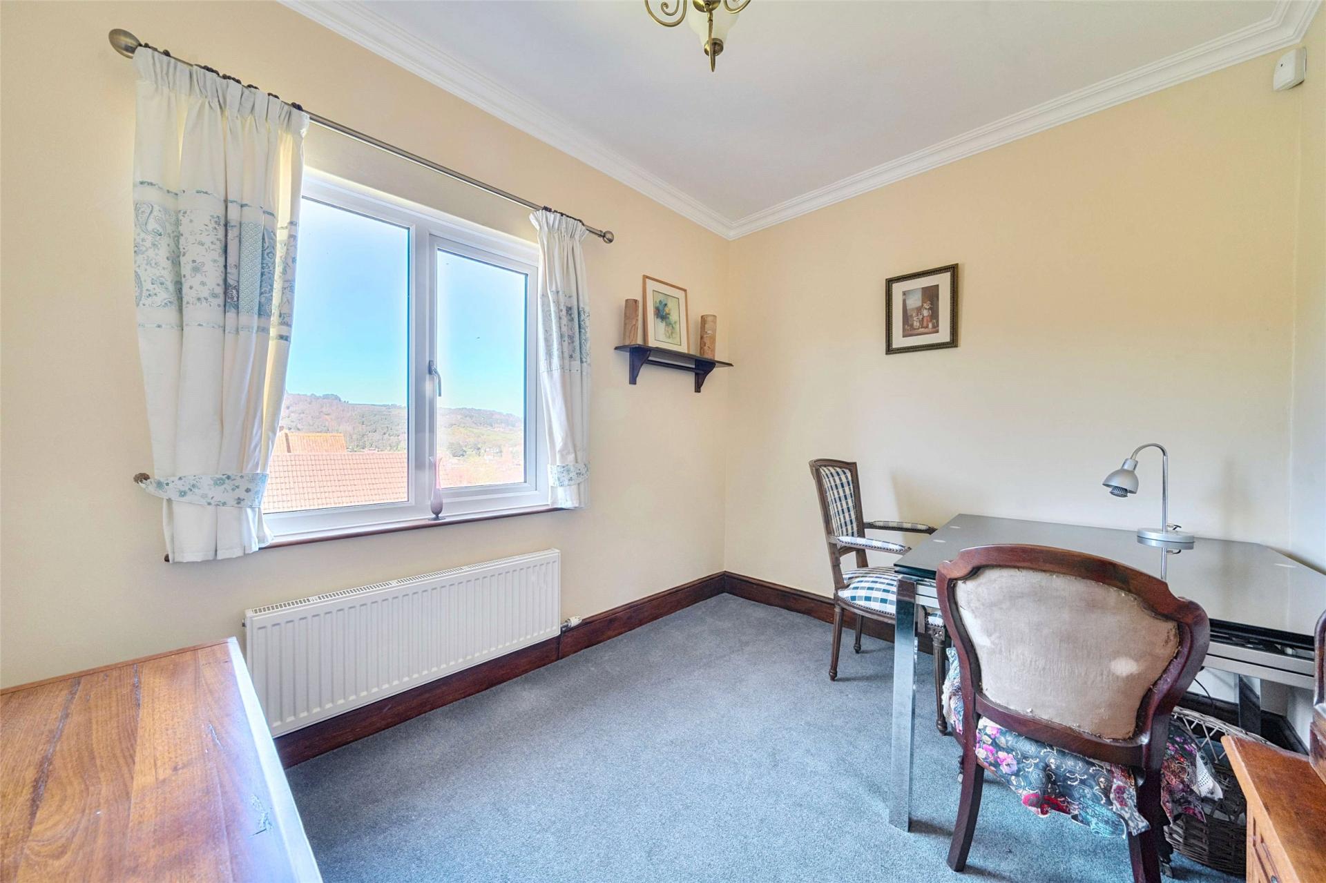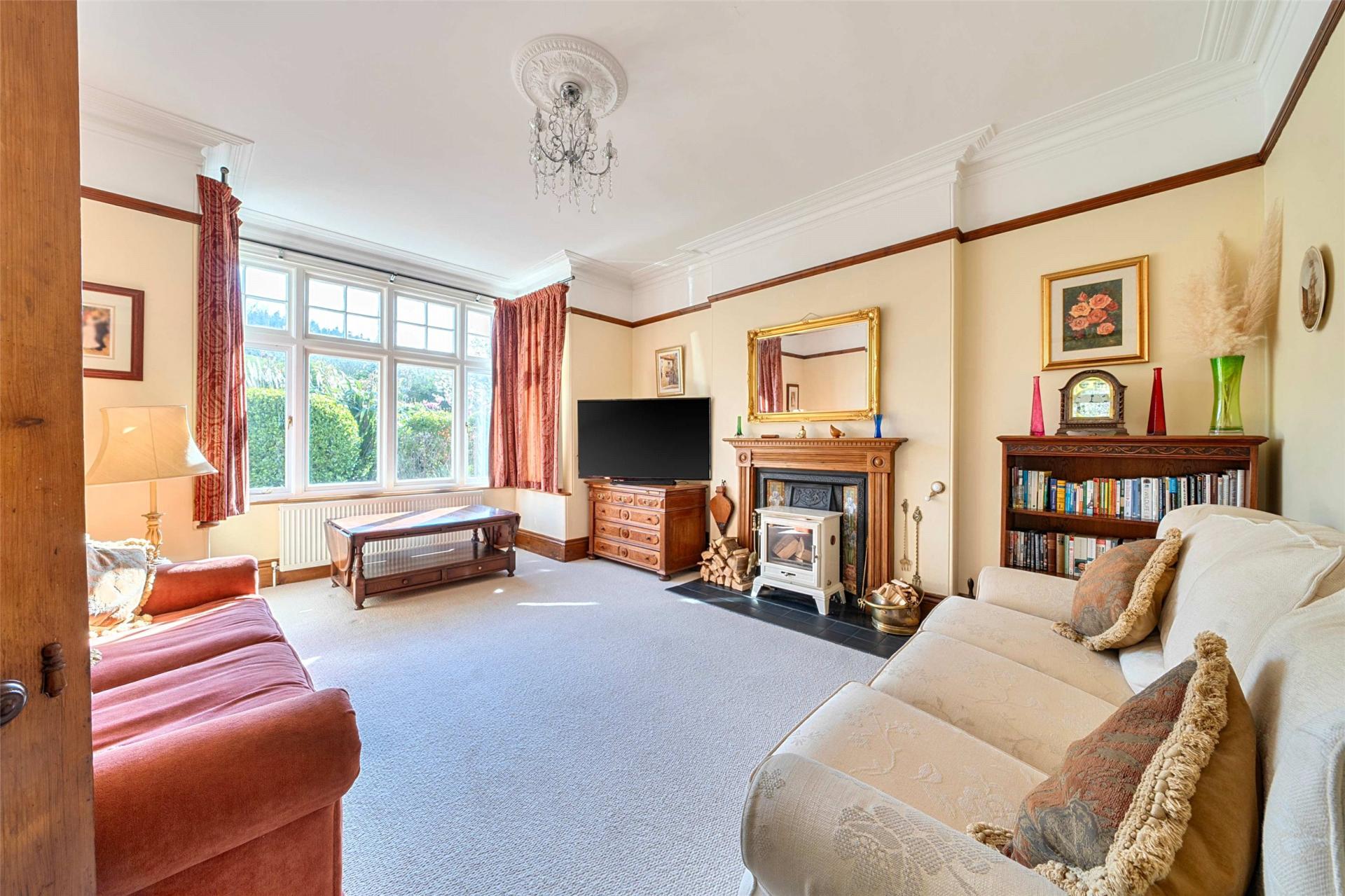 The sitting room offers another inviting reception area, centred around a bay window looking out towards the woodland and picturesque front garden. Once again, the original Victorian fireplace with oak surround and slate hearth provides a focal point, and the room has an easy, comfortable atmosphere well suited to everyday relaxation.