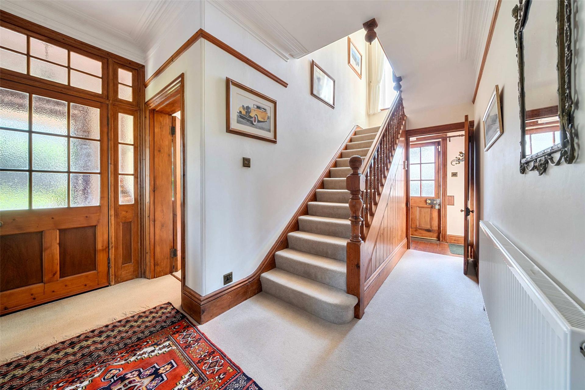 The entrance begins through a solid timber front door into a porch with original Victorian ceramic tiled flooring, setting the tone for the house beyond. A glazed inner door opens into a welcoming reception hall where the scale of the accommodation becomes apparent straight away. From here, the principal ground floor rooms unfold naturally, while a staircase rises to the first floor. Throughout the house there are many features typical of its era, including stripped pine joinery, attractive architraves, picture rails, moulded coving, fireplaces, bay windows and even servant bells, all combining to give the house a distinctive sense of heritage.