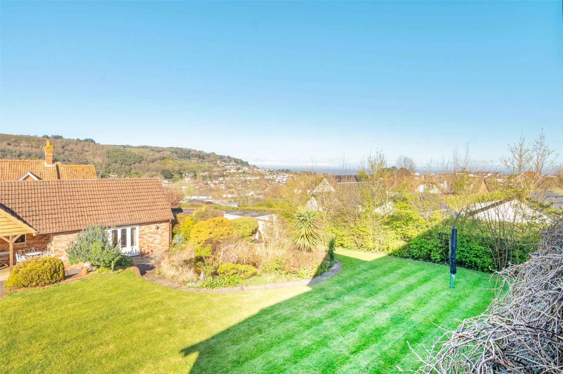 Outside, the grounds are an important part of what makes this home so memorable. The wrap around gardens are predominantly level, carefully maintained and designed to be enjoyed. There are manicured lawns, paved paths, stocked borders filled with mature plants and shrubs, and a large ornamental goldfish pond with rockery beside. The setting is ideal for outdoor dining, entertaining and simply appreciating the exceptional outlook across North Hill and Exmoor.