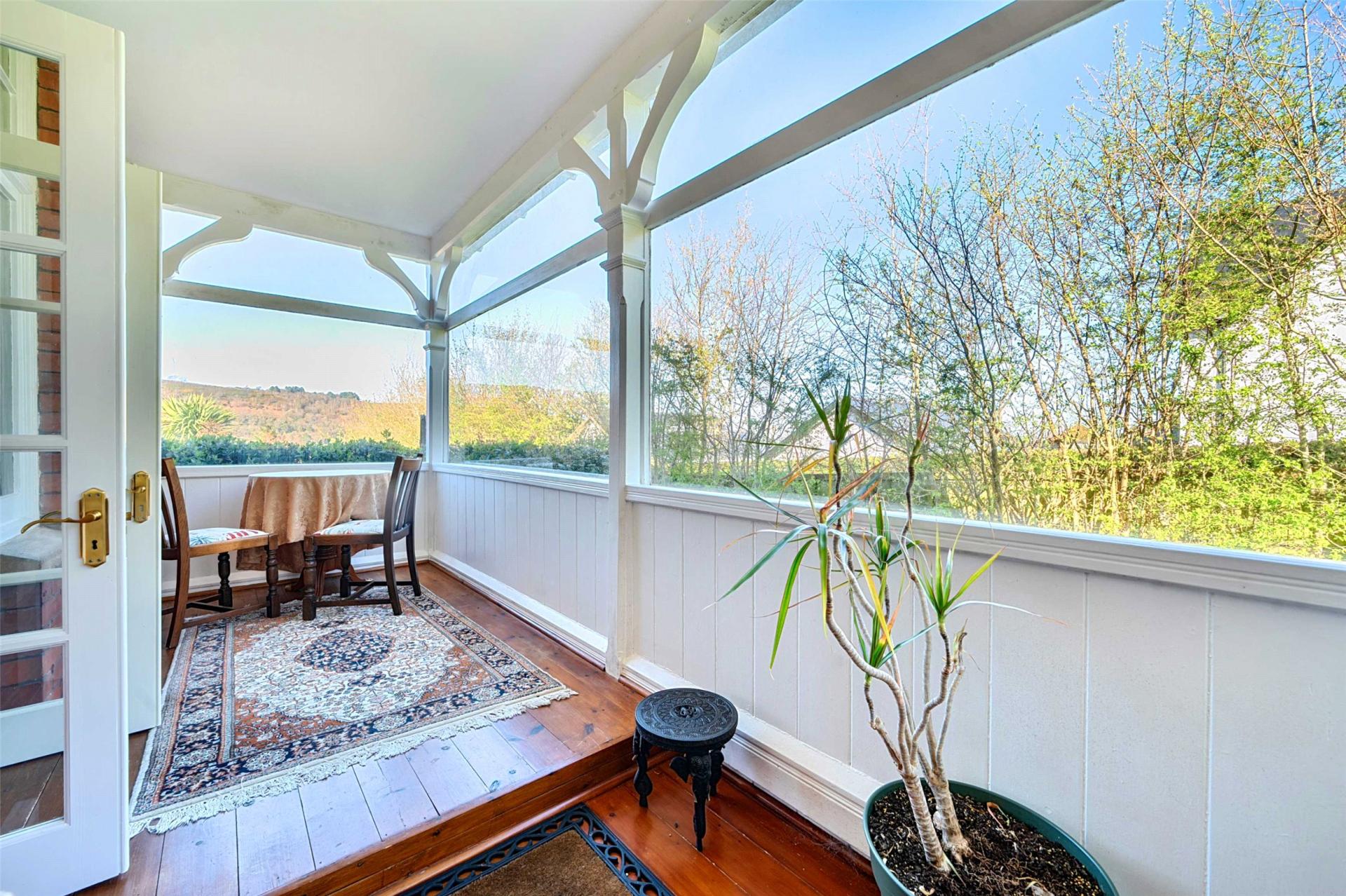 The formal dining room sits to the rear and enjoys a lovely outlook over the garden towards Exmoor. This is a room made for gathering, with its original fireplace and direct connection through to both the orangery and the kitchen and breakfast room. The orangery itself is a standout feature, with windows to all elevations and a door to the side, drawing in the garden setting from every angle. It offers a calm and uplifting place to sit, entertain or simply enjoy the changing light and far reaching scenery throughout the day.