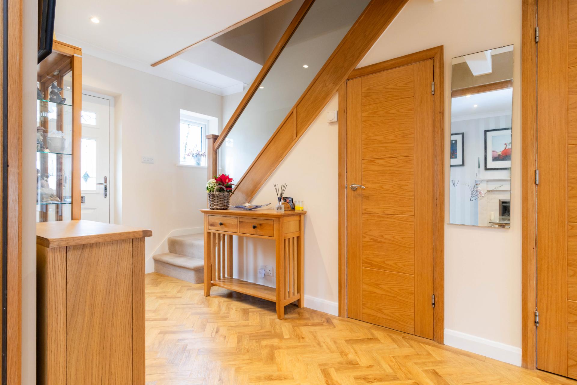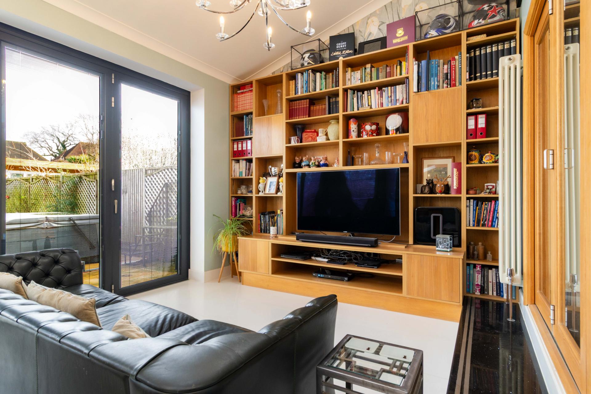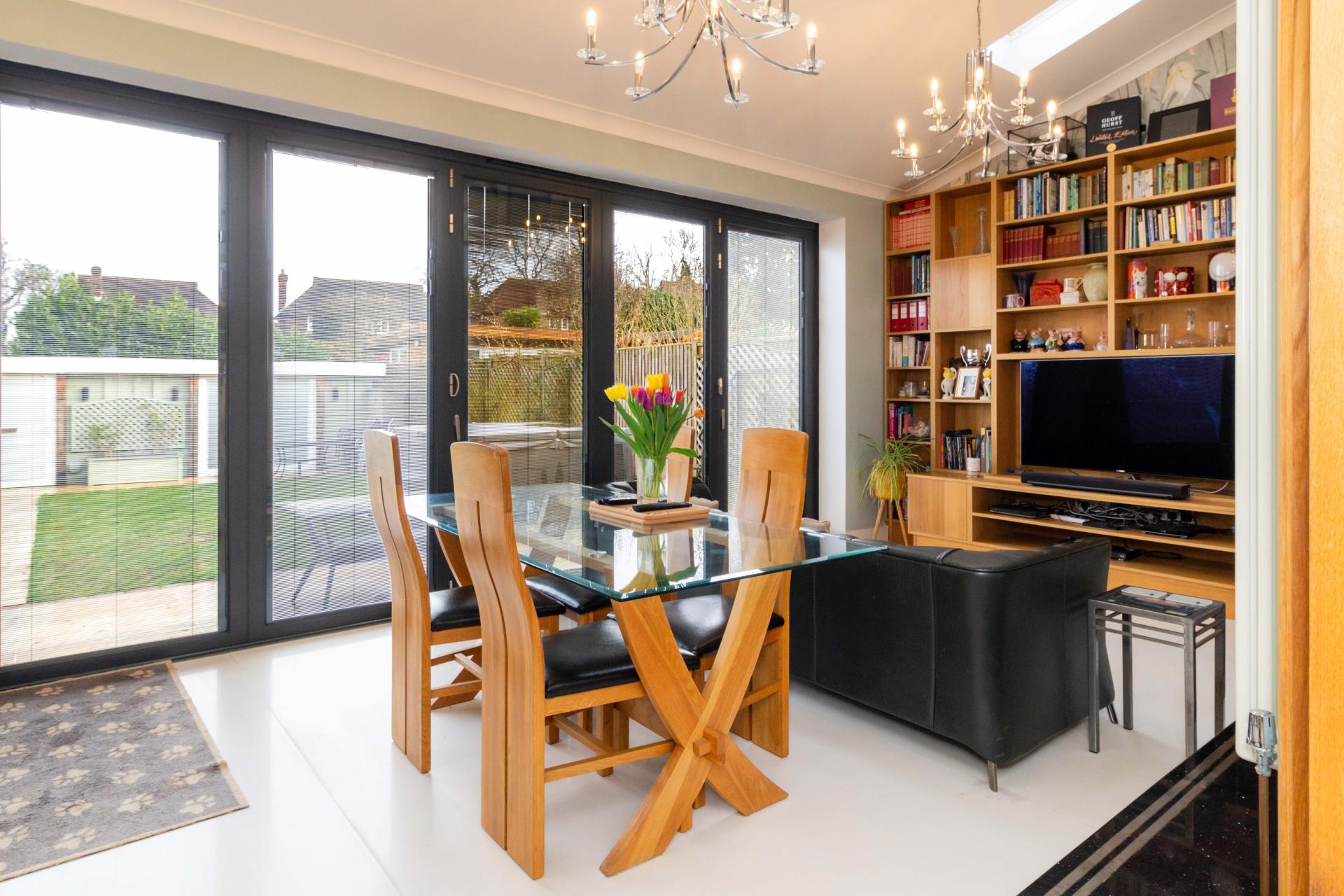 This beautifully presented three-bedroom detached home has been thoughtfully extended to the ground floor and offers stylish, flexible living. The heart of the house is the impressive kitchen with a stunning vaulted ceiling, creating a bright and spacious feel, while the modern lounge flows seamlessly through to the kitchen via internal doors. A separate utility room and convenient downstairs WC add to the practicality of the layout. Outside, the attractive rear garden features a level lawn and a fabulous cabin, cleverly designed with generous storage to one side and a dedicated office space to the other, ideal for home working or hobbies. Perfectly positioned in a highly sought-after location, the property is close to the ever-popular The Ridgeway School and within easy reach of two mainline railway stations, making it an excellent choice for families and commuters alike.