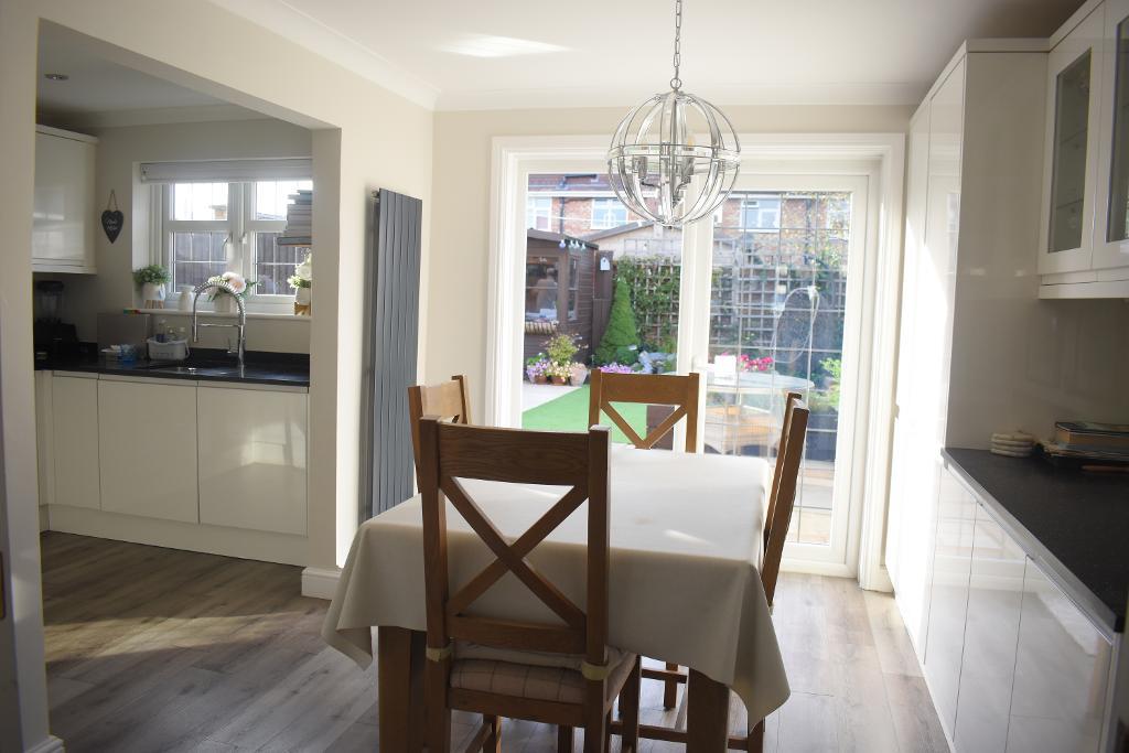 The dining area is a very well presented space with clodded flooring and double leaded feature double doors leading out onto the rear garden.