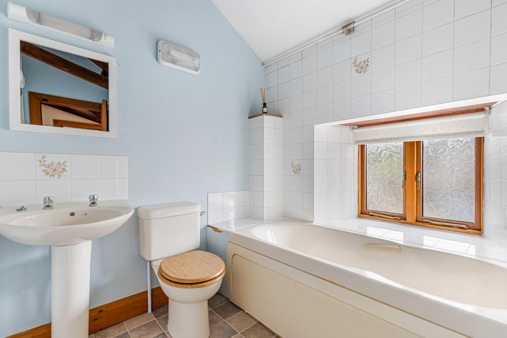 Upstairs, a wide landing connects two generously sized bedrooms, with the master bedroom enjoying lovely views over the surrounding countryside. A well-appointed family bathroom completes the upper floor.